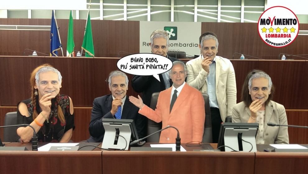 MILANO – E’ iniziata nell’Aula del Consiglio regionale della Lombardia la discussione della riforma della sanità, per la quale sono stati presentati oltre 16 mila emendamenti (2.547) e ordini del giorno (13.573). Prima dell’inizio della seduta, i consiglieri del Movimento 5 stelle si sono presentati in Aula indossando maschere dell’ex governatore Roberto Formigoni e reggendo un cartello con scritto: “Bravo Bobo, più Sanità privata!”.