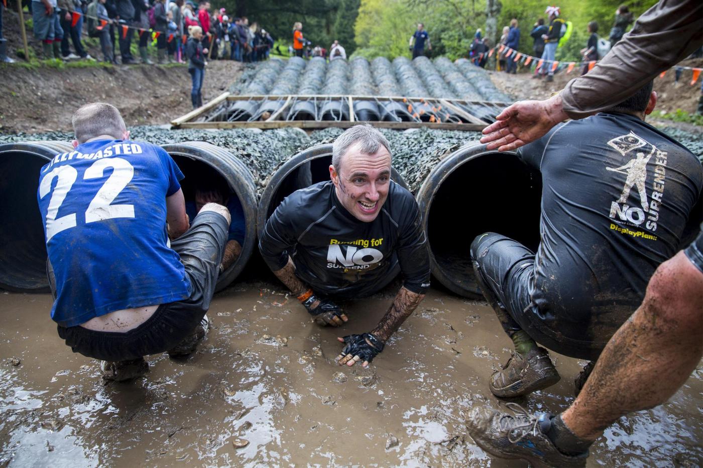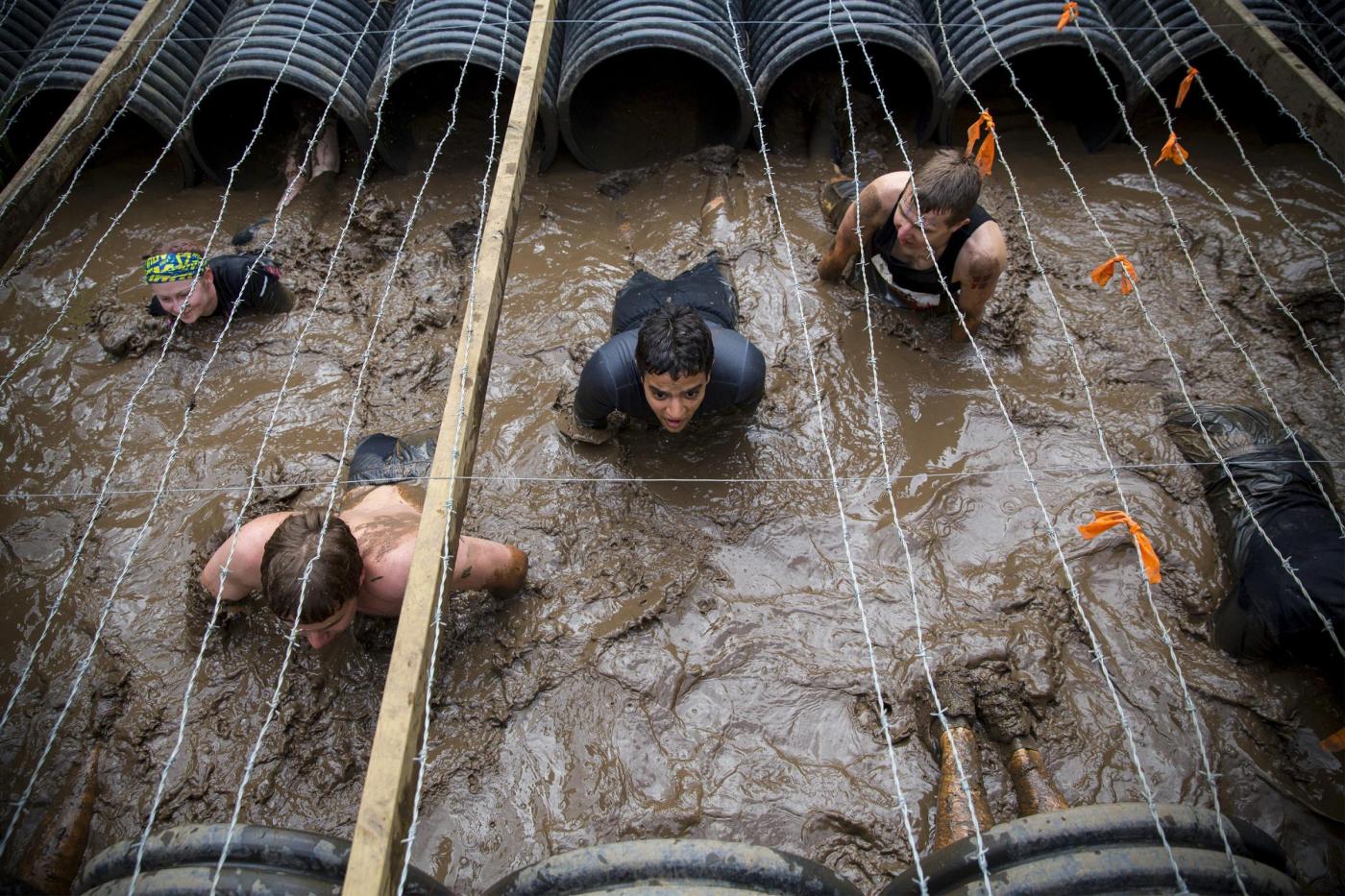 Corde sospese sull’acqua, pozze di fango e ghiaccio, tubature spalmate di grasso, percorsi di guerra sotto il filo spinato, corsa nel fango profondo. La gara ha fatto passare ai partecipanti un sabato piuttosto diverso. I partecipanti, oltre alla fatica, hanno dovuto pagare 49 sterline.
