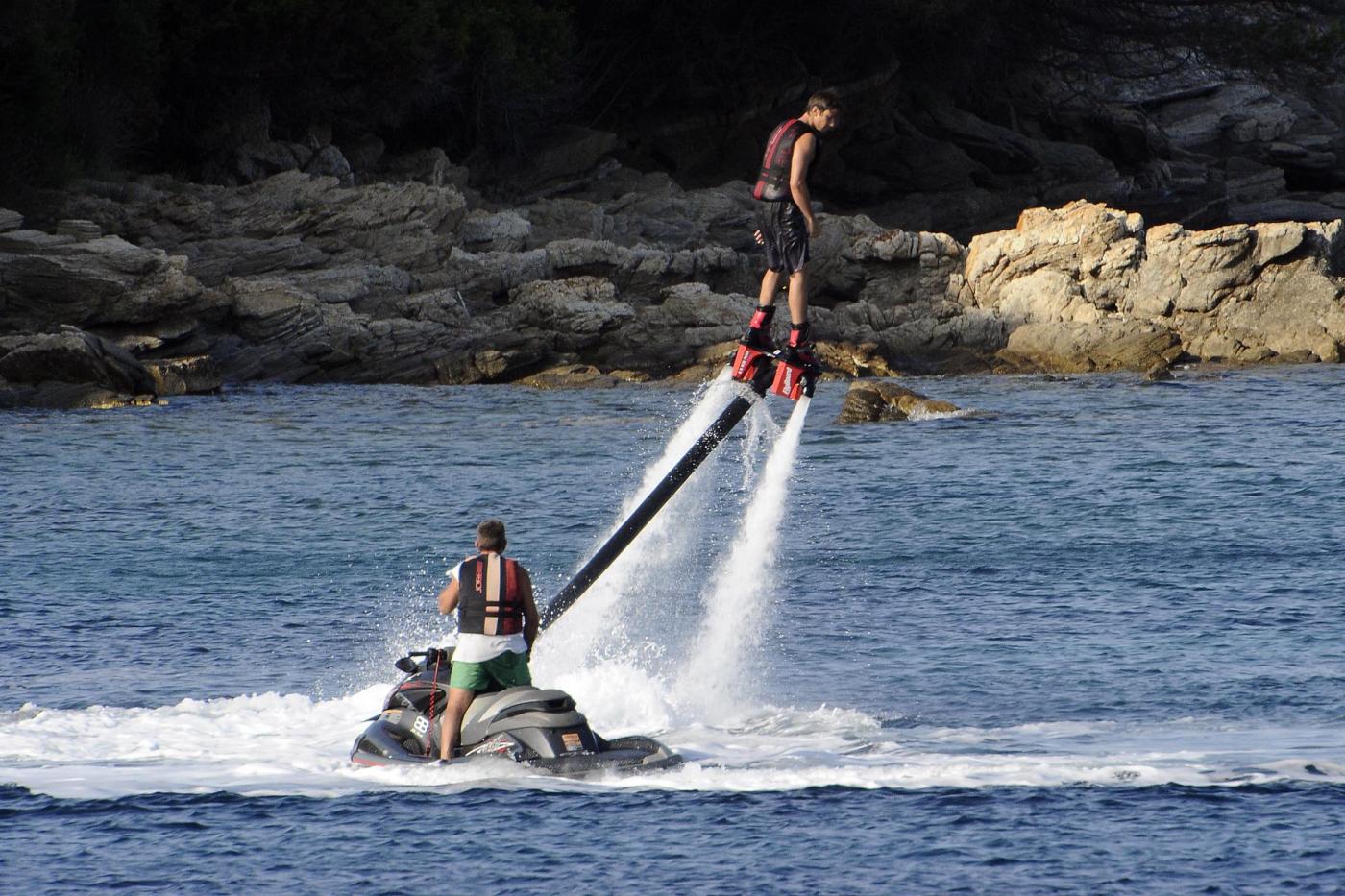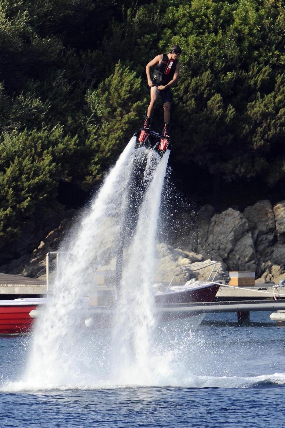 OLBIA – Vola in alto il più piccolo di casa. Luigi Berlusconi, in vacanza a villa Certosa in Costa Smeralda, si esibisce davanti ad alcuni amici in acrobazie acquatiche. Quando è in vacanza Luigi, 26 anni, esprime tutto il suo amore per lo sport. LaPresse lo ha immortalato nel fine settimana appena trascorso mentre è alle prese con il flyboard al largo del pontile della villa di papà.