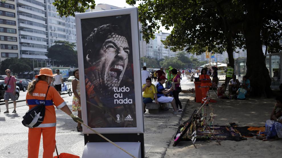 RIO DE JANEIRO – Sull’avenida Atlantica nel lungomare di Copacabana a Rio de Janeiro, decine di persone si sono messe in fila per farsi una foto davanti a un cartellone pubblicitario dell’Adidas in cui si vede Luis Suarez che digrigna i denti a bocca aperta, come fosse un animale affamato. Tutti non vogliono farsi sfuggire l’occasione di farsi ritrarre con colui che è ormai stato soprannominato “lo Squalo”. Il riferimento è al morso che il bomber dell’Uruguay ha dato a Giorgio Chiellini durante Italia-Uruguay. Il morso è costato a Suarez una pesantissima squalifica che gli ha rifilato la Fifa.