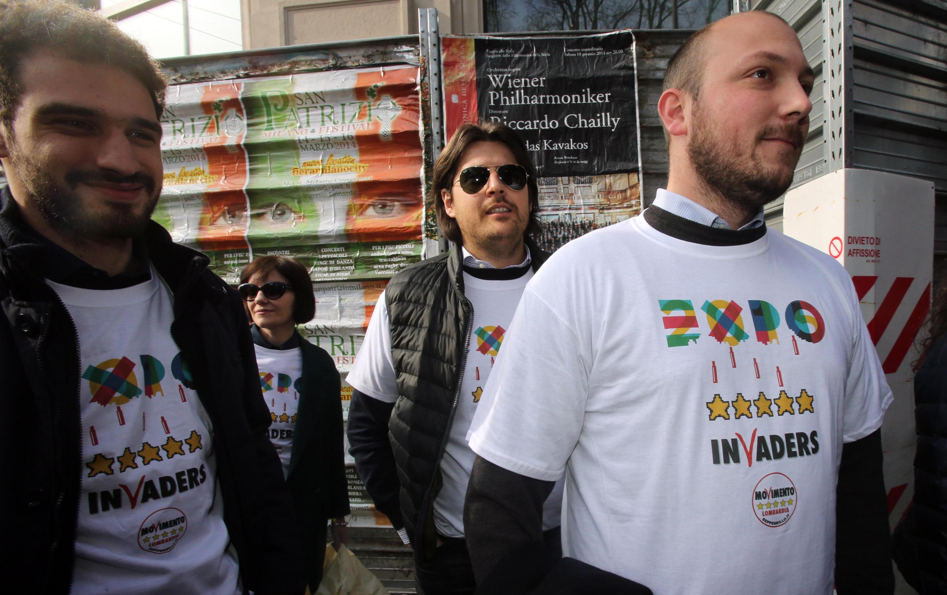 La delegazione era composta di 120 persone e c’era ancheย Beppe Grillo. I consiglieri lombardi indossavano magliette bianche con la scritta ‘Expo invaders‘ che riprende i loghi dell’Expo e del M5s aggiungendovi il disegno di proiettili stilizzati.
