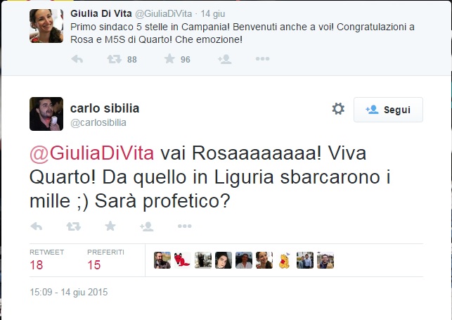 Il tweet “incriminato” è partito da Sibilia che voleva complimentarsi con il risultato elettorale di M5s in Sicilia. Sibilia ha infatti commentato il cinguettio della collega Giulia Di Vita che celebrava l’elezione di un sindaco M5s a Quarto. Ed ecco il suo tweet che ha scatenato le reazioni ironiche e sarcastiche degli utenti di Twitter: