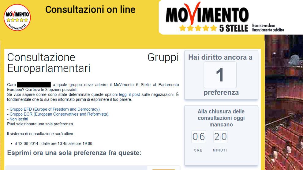 ROMA – M5s, gli elettori registrati al blog di Beppe Grillo hanno votato per le alleanze a Bruxelles e ha vinto il gruppo parlamentare Efd (Europa della libertà e della democrazia) che comprende anche lo Ukip di Nigel Farage. Erano, però, solo tre le opzioni lasciate agli elettori M5s: Efd, Ecr (il Gruppo dei Conservatori e riformisti europei) e il raggruppamento dei non iscritti. Per questo sono state molte le critiche e le proteste degli stessi utenti del blog, che lamentavano soprattutto l’assenza dei Verdi dalle possibili alleanze.