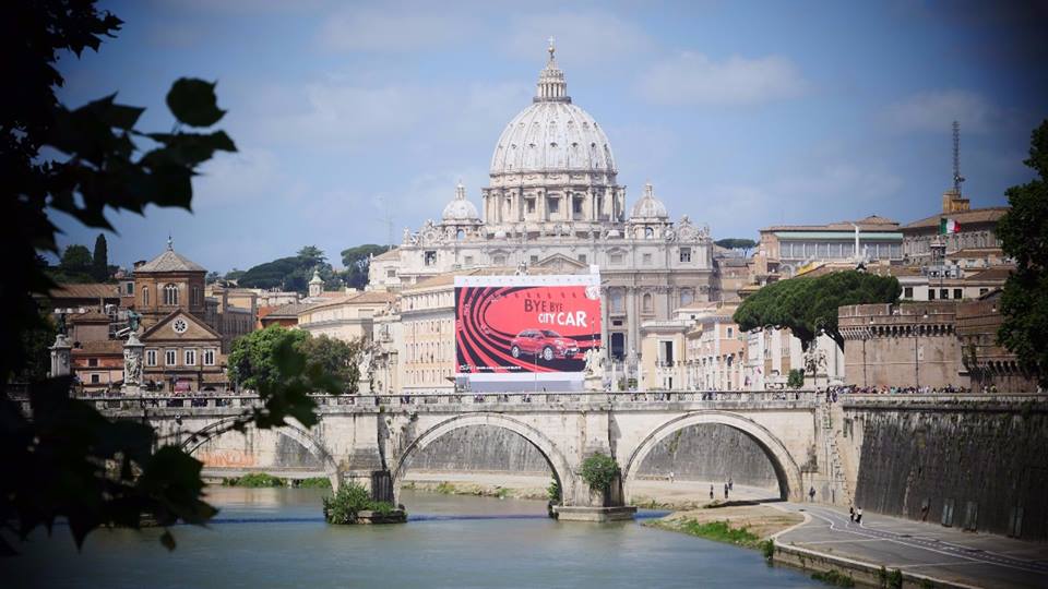 “venduto’ a Marchionne uno degli scorci più belli di Roma. L’impossibile e l’assurdo è diventato possibile a Roma, dove da qualche giorno una enorme pubblicità ‘rosso fuoco’ della Fiat campeggia ad inizio di via Conciliazione violentando tutta la visuale di piazza San Pietro da ponte Sant’Angelo e Ponte Umberto I”.