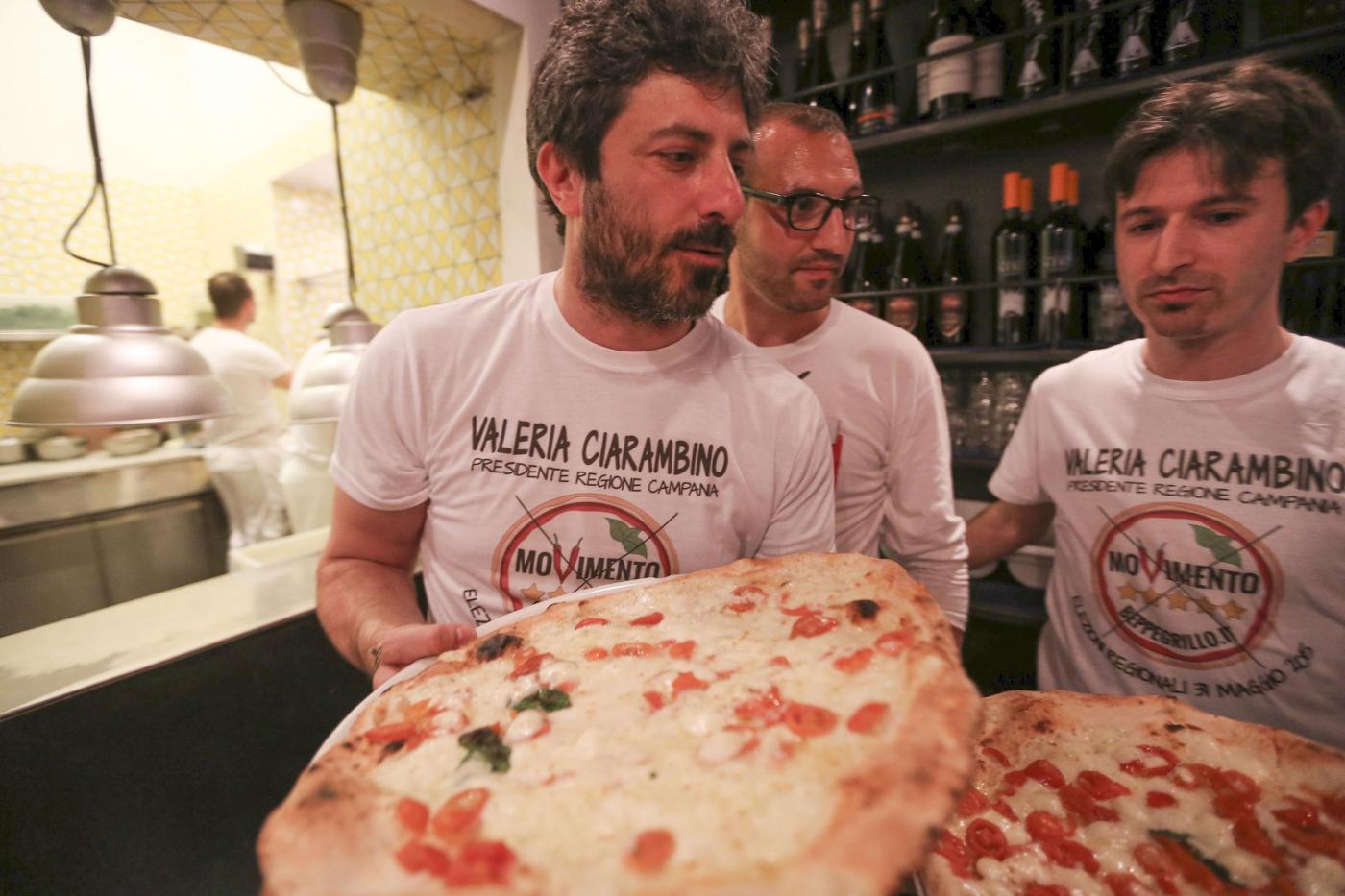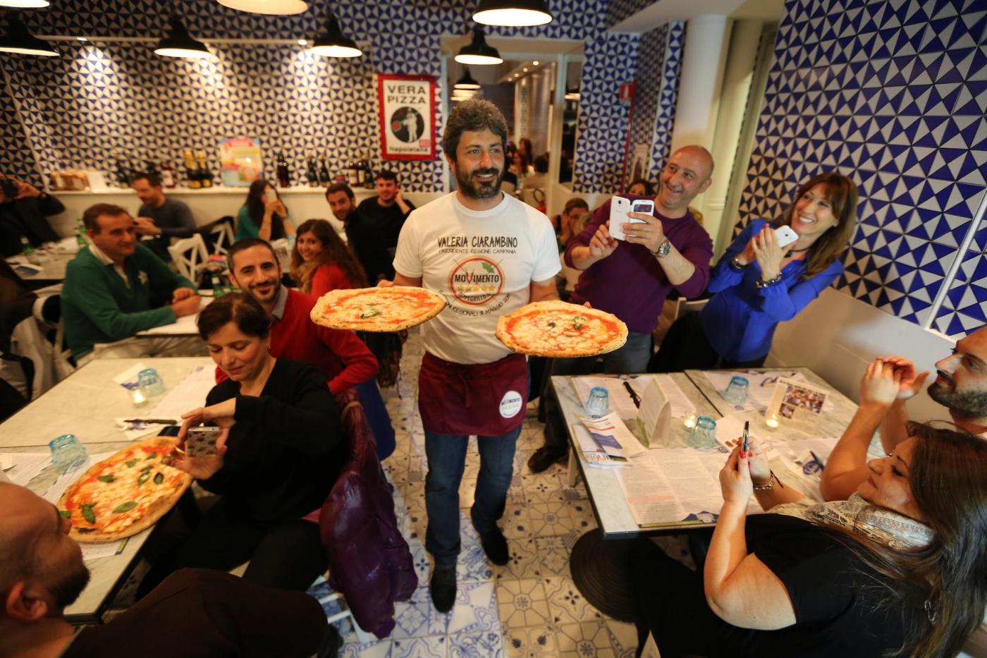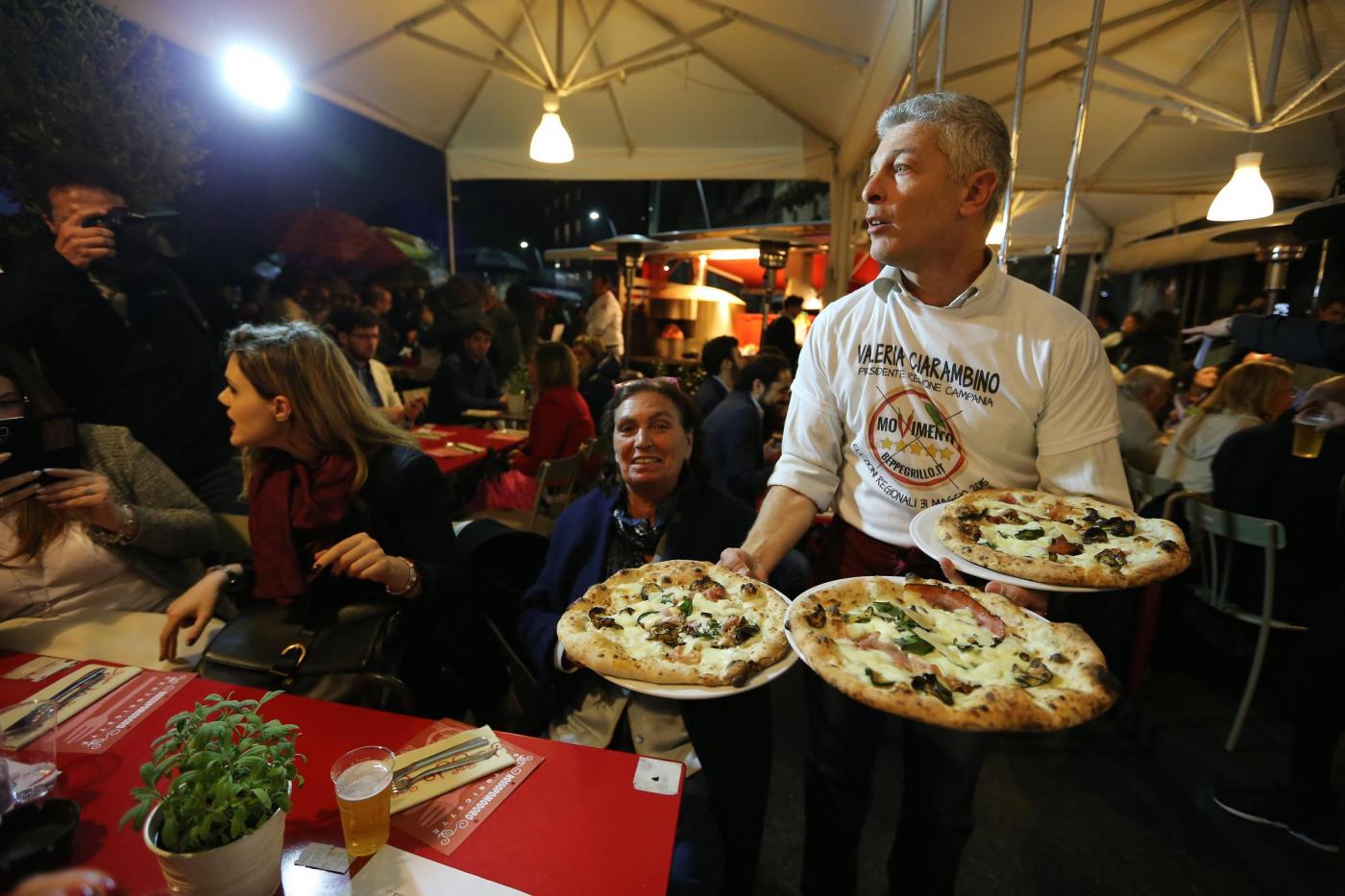 NAPOLI – Se la politica è servizio, Movimento 5 Stelle lo dimostra così: indossando per una sera gli abiti dei camerieri e servendo pizze ai tavoli. Sul lungomare di Napoli, il Movimento cinque stelle ha organizzato un’iniziativa per autofinanziare la campagna elettorale di Valeria Ciarambino, candidata alla presidenza della Regione Campania, in vista delle prossime elezioni regionali e con lei ci sono i parlamentari grillini e i candidati al Consiglio regionale. La fila, davanti a due pizzerie del lungomare napoletano, è composta da cittadini, semplici sostenitori, e appartenenti ai meetup.