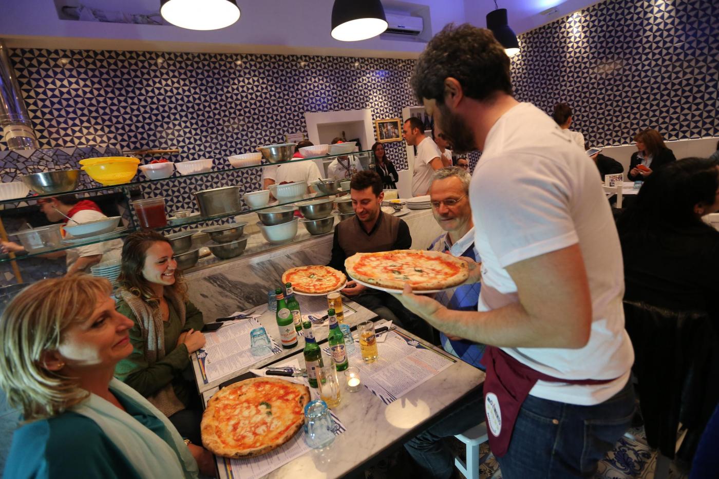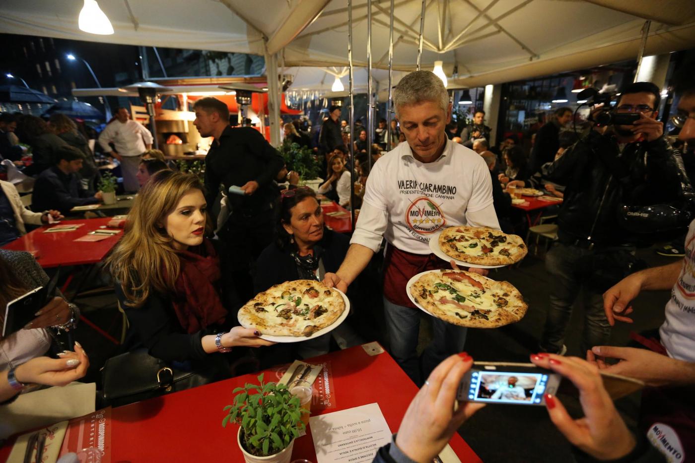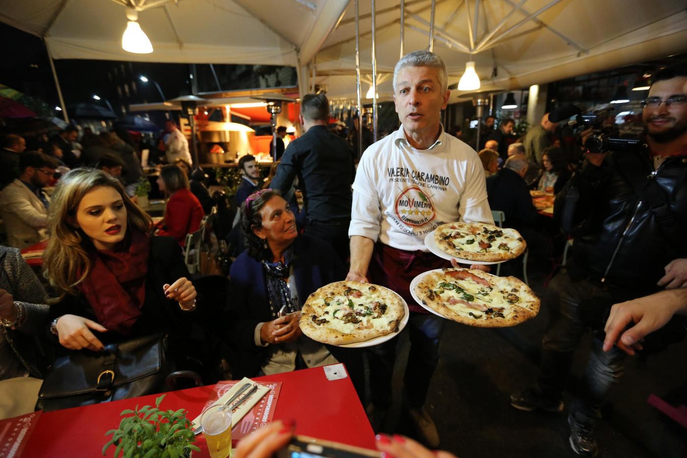 NAPOLI – Se la politica è servizio, Movimento 5 Stelle lo dimostra così: indossando per una sera gli abiti dei camerieri e servendo pizze ai tavoli. Sul lungomare di Napoli, il Movimento cinque stelle ha organizzato un’iniziativa per autofinanziare la campagna elettorale di Valeria Ciarambino, candidata alla presidenza della Regione Campania, in vista delle prossime elezioni regionali e con lei ci sono i parlamentari grillini e i candidati al Consiglio regionale. La fila, davanti a due pizzerie del lungomare napoletano, è composta da cittadini, semplici sostenitori, e appartenenti ai meetup.