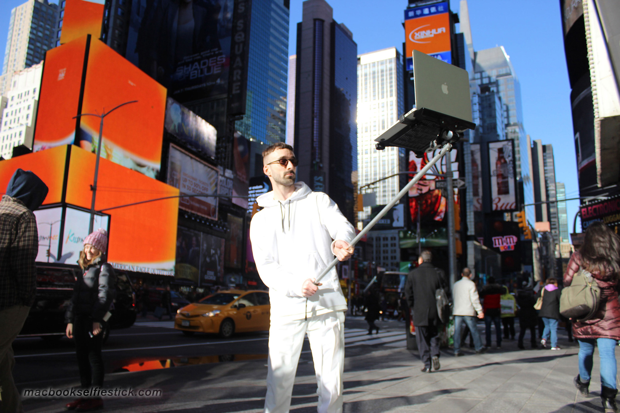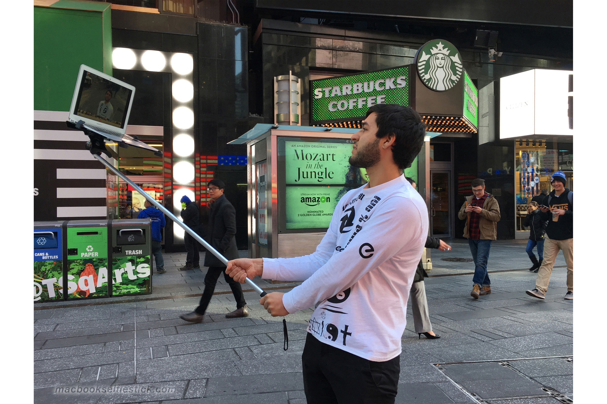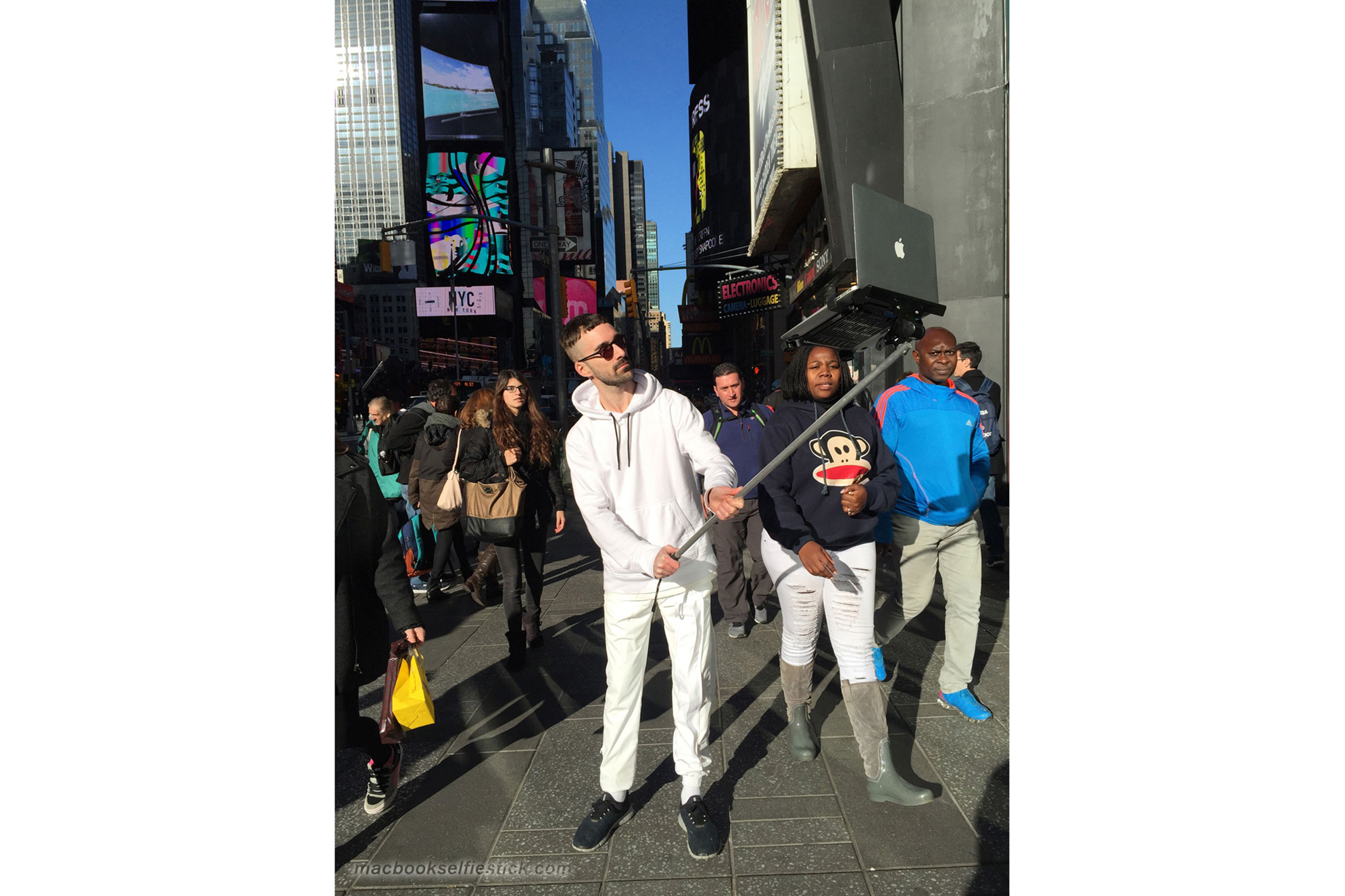 I quattro creativi hanno mostrato l’utilizzo della loro invenzione in luoghi storici di New York come Times Square e Washington Square Park. In molti hanno assistito agli scatti con indifferenza. Come racconta però il Daily Mail, alcuni hanno però apprezzato l’idea del Macbook selfie Stick, commentando positivamente sia su Snapchat, sia su Twitter in questo modo: “Ho appena visto un MacBookselfie stick. È un’invenzione fantastica”.