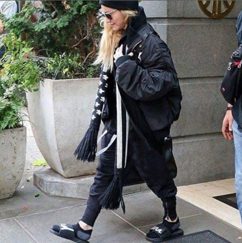 A seguire le foto Instagram con Madonna che indossa le ciabatte con nonchalance, senza far caso a quello che pensano le persone.