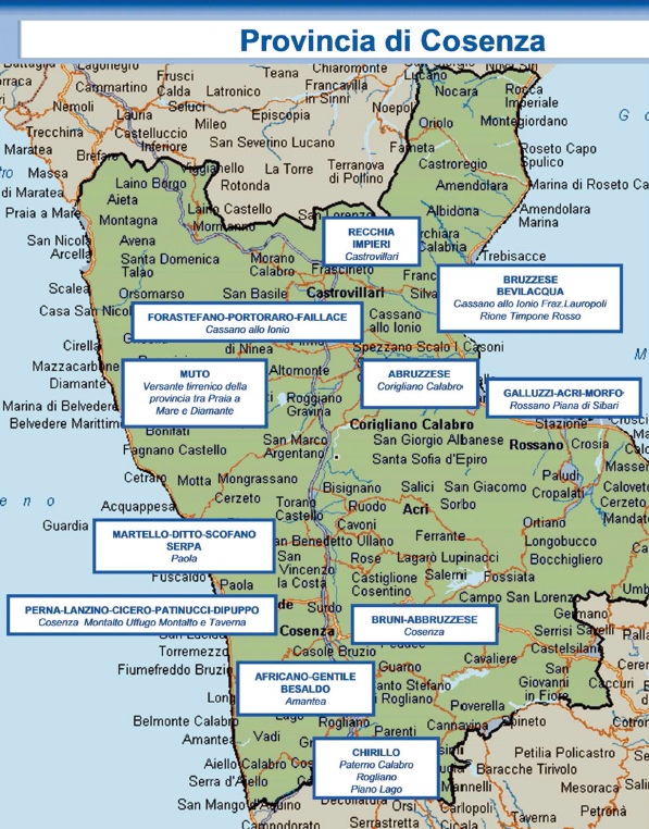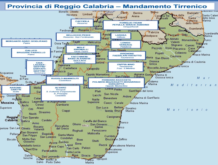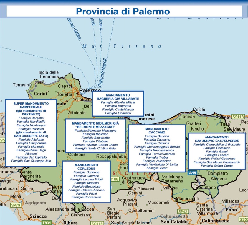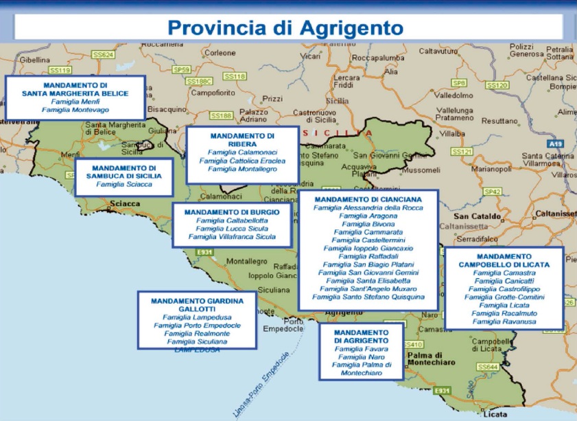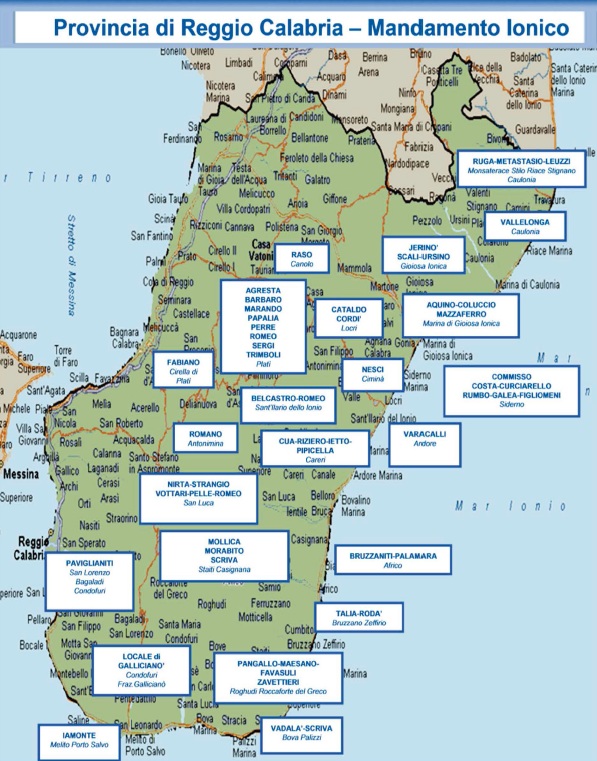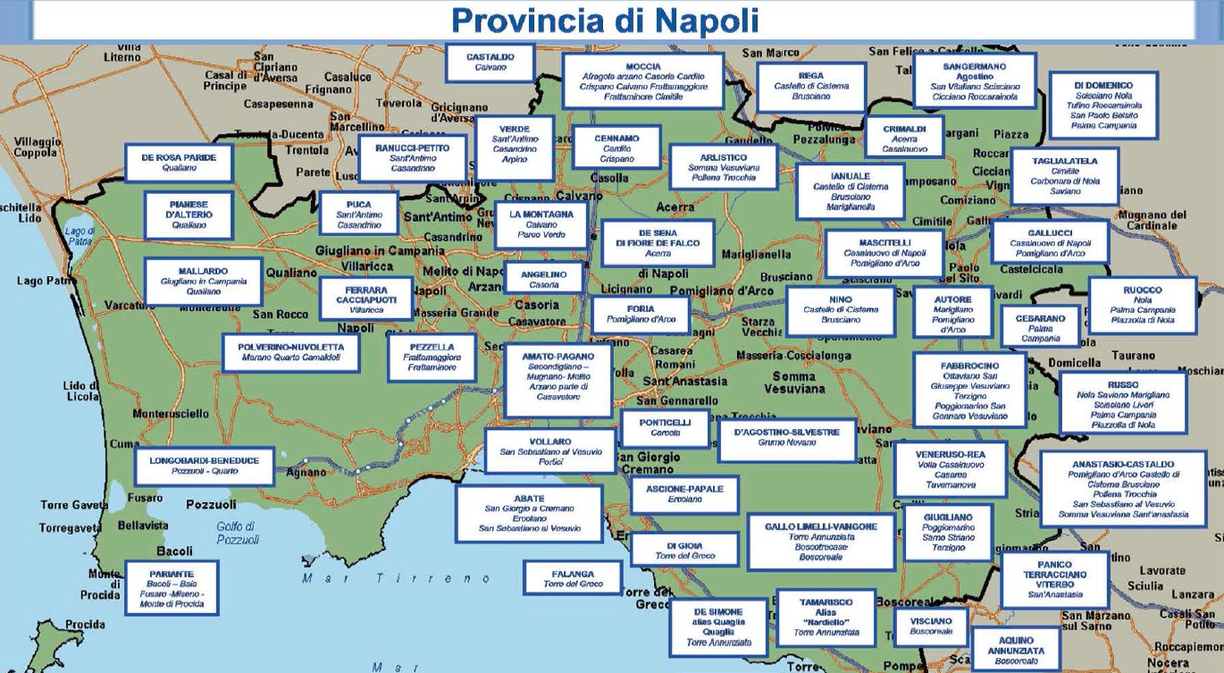 Di seguito la mappa dei principali gruppi criminali che operano in Campania, Calabria e Sicilia.
