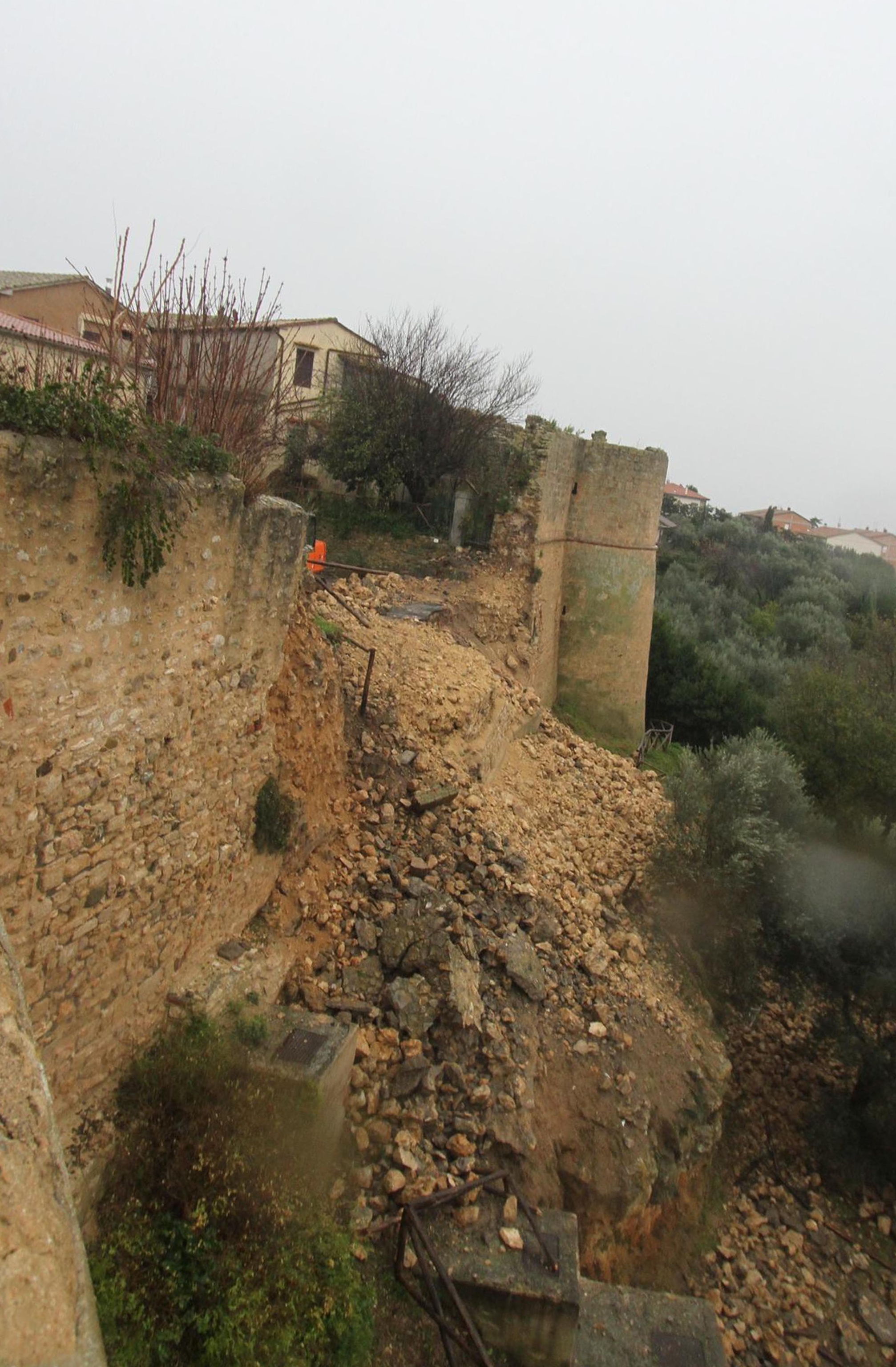 L’area è stata transennata dai vigili del fuoco e operatori sono sul posto per cercare di ridurre lo smottamento. Durante l’alluvione del 2012 era già franato un torrione delle stesse mura. Maltempo anche nella zona sud della provincia: la strada regionale 74 è chiusa al traffico dopo l’esondazione del torrente Sgrilla, lo stesso che il 14 ottobre scorso travolse e uccise due sorelle di Manciano intrappolate in auto. Il fiume Pecora è al livello di guardia e la Protezione civile e i vigili del fuoco stanno monitorando la situazione.