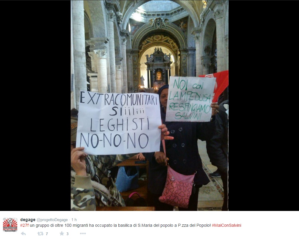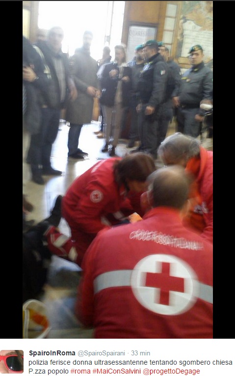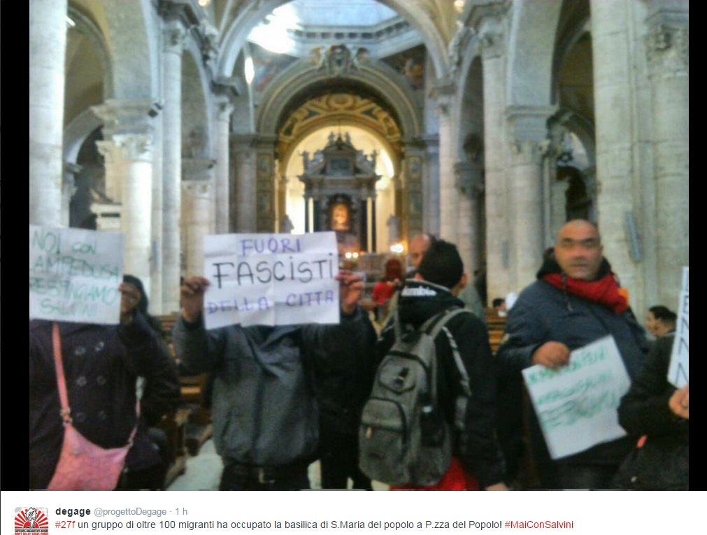 Su Twitter sono state pubblicate le foto dello sgombero avvenuto nella chiesa di piazza del Popolo. Repubblica Tv ha diffuso un video dello sgombero.