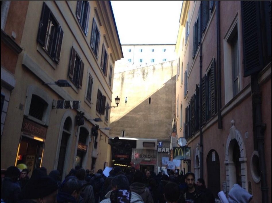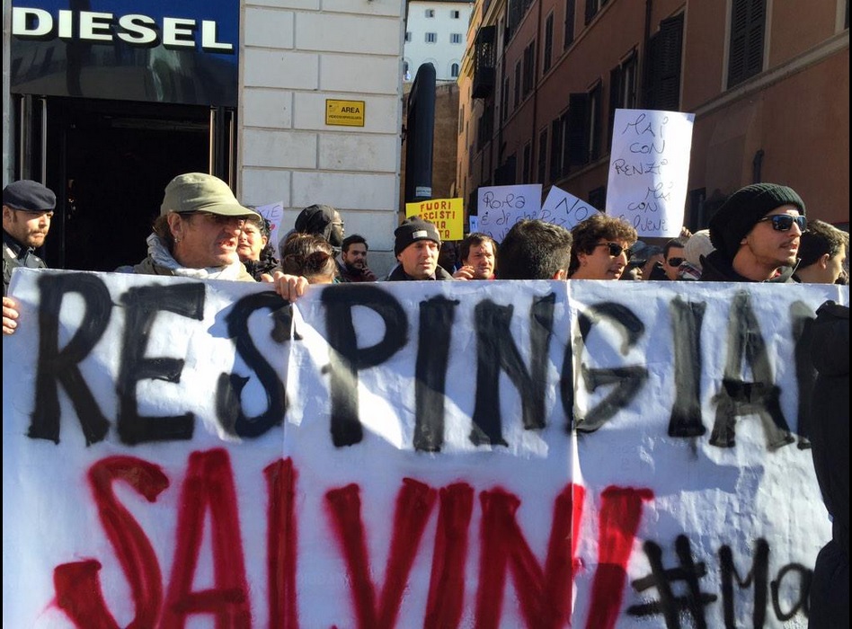 ROMA Un gruppo di militanti dei movimenti di lotta per la casa, la mattina del 27 febbraio è entrato per una ‘occupazione’ simbolica nella Basilica di piazza del Popolo, al centro di Roma dove domani, sabato 28 febbraio, si svolgerà la manifestazione indetta da Matteo Salvini contro il governo Renzi. Un centinaio attivisti dei movimenti di lotta per la casa sono stati bloccati all’ingresso della metro piazza di Spagna a Roma: erano diretti in piazza del Popolo ma sono stati fermati dalle forze dell’ordine. Un gruppo è comunque riuscito a raggiungere la piazza ed è entrato nella basilica di Santa Maria del Popolo dove ha srotolato gli striscioni con su scritto ‘Mai con Salvini, mai con Renzi, respingiamoli’. Sono intervenuti gli agenti che li hanno trascinati fuori, una donna ha avuto un malore e sul posto è arrivata un’ambulanza.