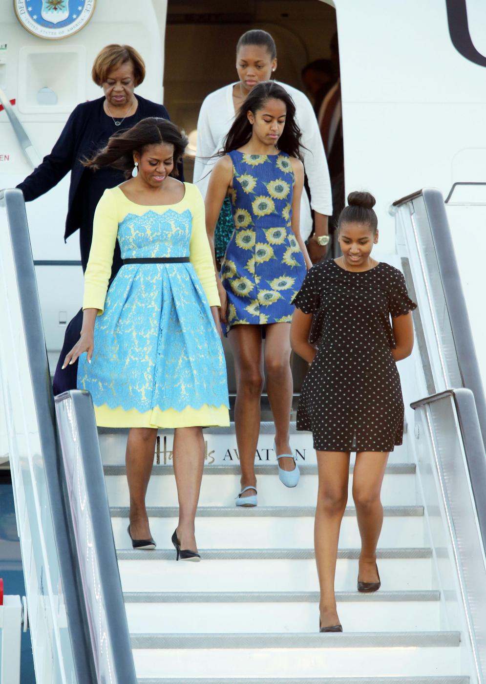 ROMA – Il vento tira un brutto scherzo a Malia Obama, “first daughter” d’America. La figlia del presidente americano è stata fotografata mentre scendeva dall’Air Force One a Madrid insieme alla illustre famiglia. In occasioni del genere è scontato che l’ospite d’onore sia accolto da un plotone di fotografi. E così è stato inevitabilmente immortalato anche il momento in cui una folata di vento ha alzato la gonna della 17enne Malia che ha involontariamente mostrato una buona porzione delle sue lunghe gambe.