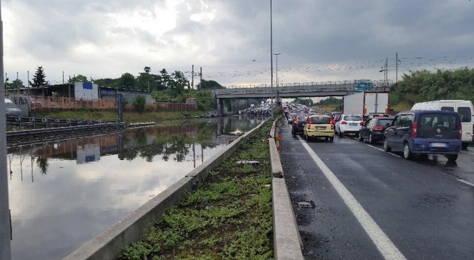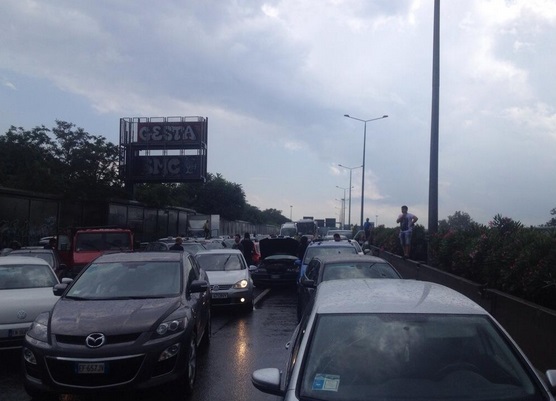 ROMA – Centinaia di automobilisti, che si sono trovati sul Grande raccordo anulare quando questo pomeriggio, domenica 15 giugno, si è abbattuto il violento nubifragio su Roma, sono rimasti bloccati per oltre tre ore, nei pressi dell’uscita Gregna Sant’Andrea.