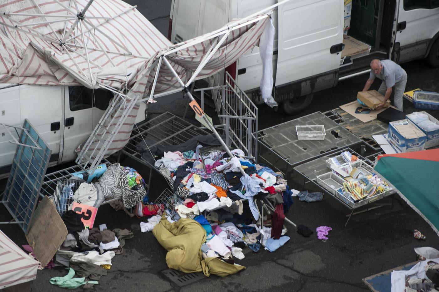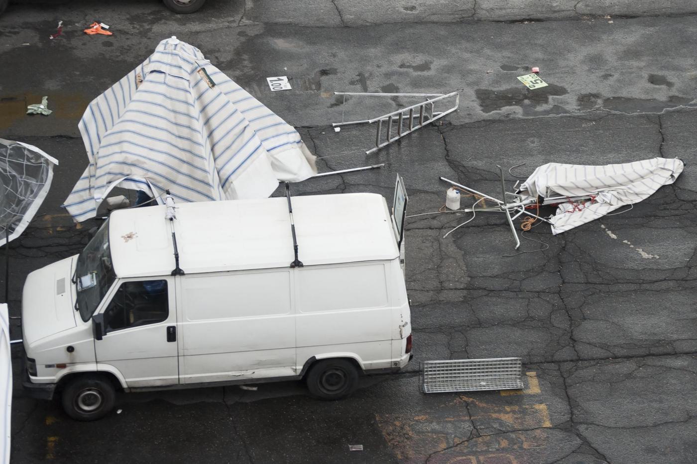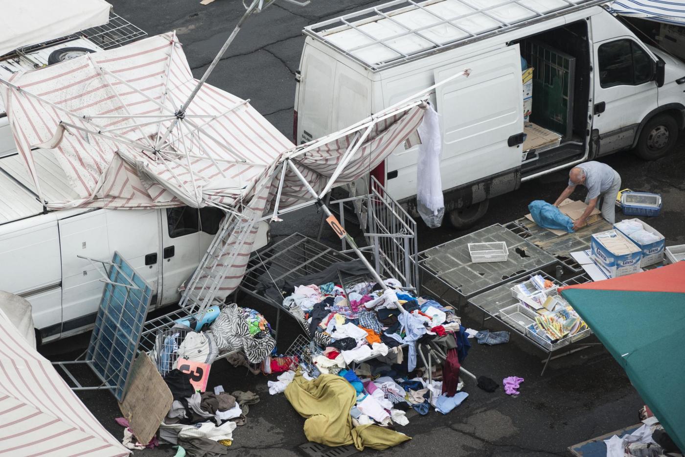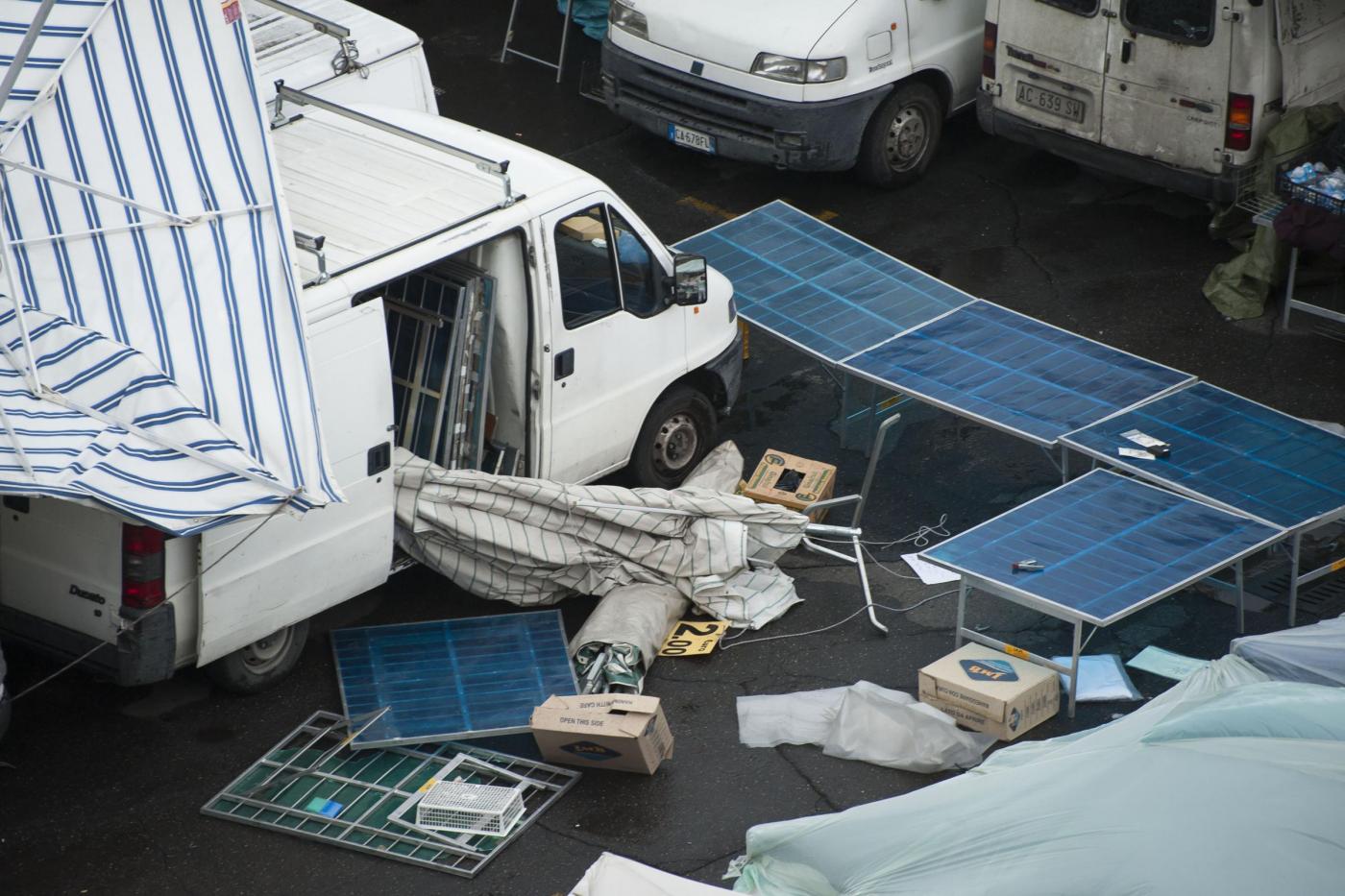 Le foto del mercato rionale colpito dalla tromba d’aria (foto LaPresse)