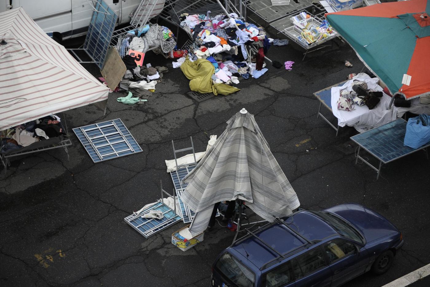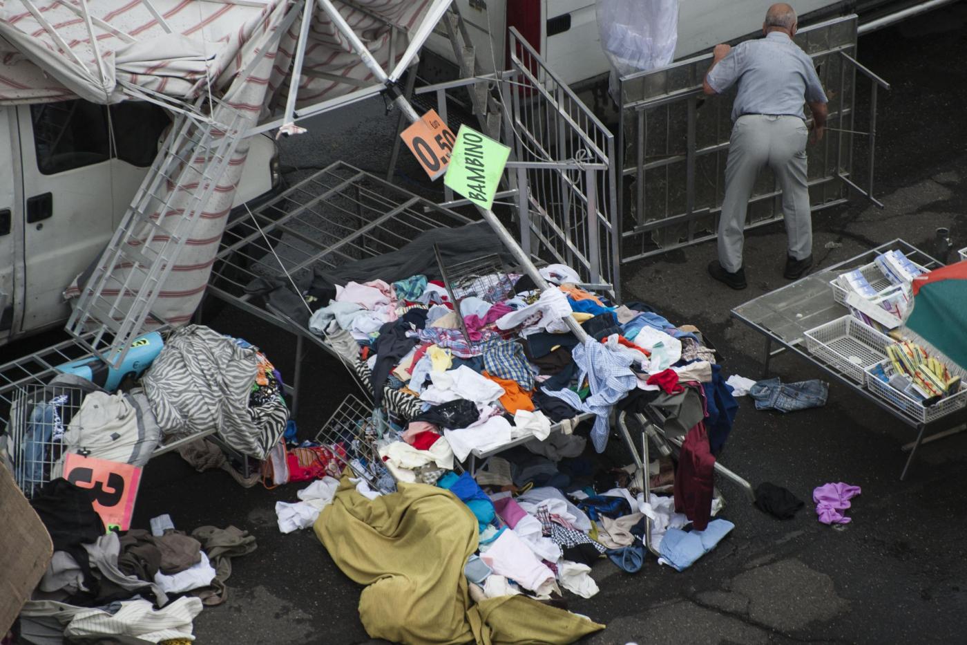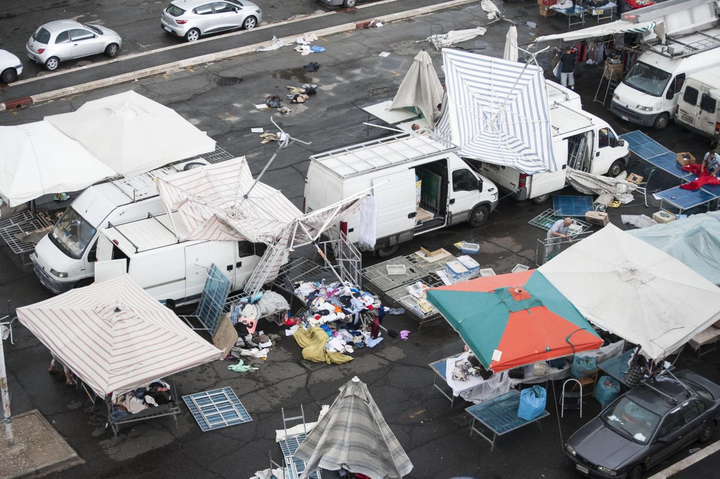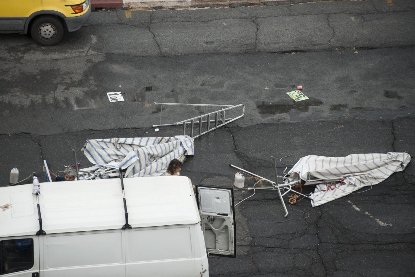 Le foto del mercato rionale colpito dalla tromba d’aria (foto LaPresse)