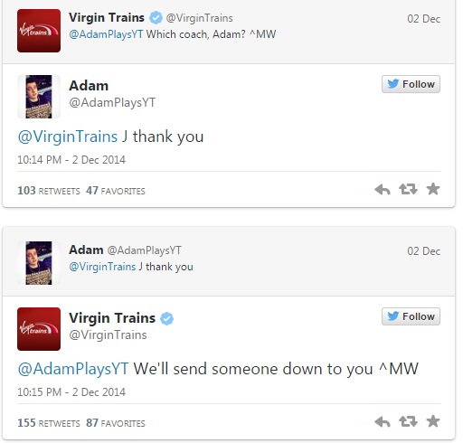 La storia ha incuriosito Metro.co.uk che pubblica lo scambio di tweet tra passeggero e Virgin:
