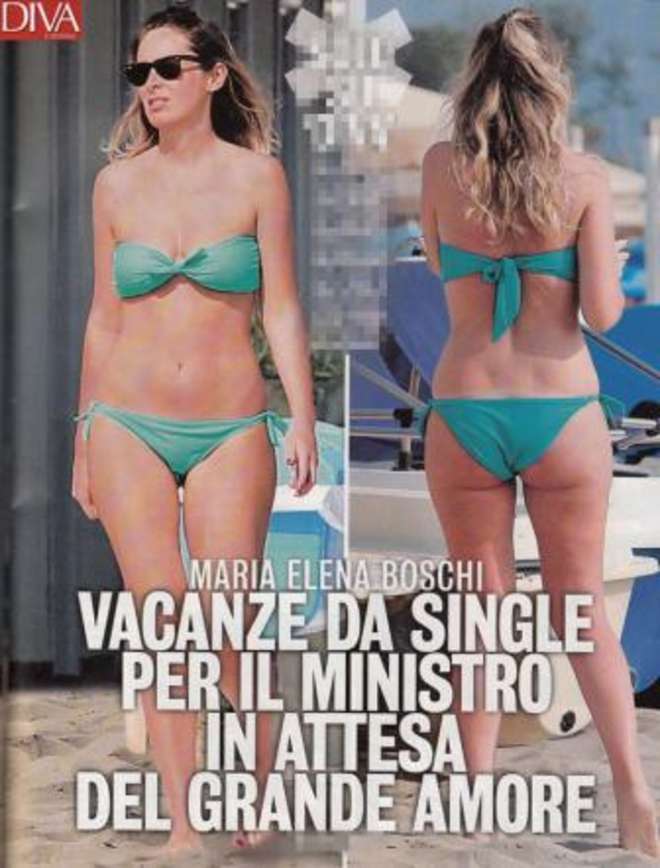 E così, dopo Chi, Novella 2000 e Oggi, è la volta del settimanale Diva e Donna che l’ha fotografata mentre si rilassa sul lettino, mettendosi in pose tipiche di una persona qualunque che sta al mare (ma lei, una persona qualunque non è). La Boschi, sul lettino viene immortalata con le gambe aperte, la schiena nuda e il viso imbronciato e annoiato forse perché, come scrive Diva e Donna è alla ricerca del grande amore. Questa volta il bikini della giovane ministra è di color verde.
