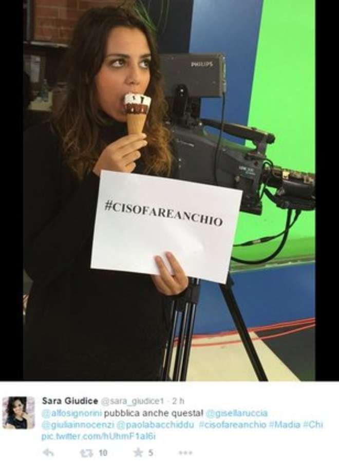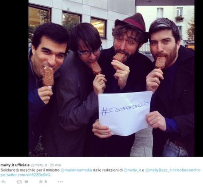 Su Twitter è stato creato un hashtag, #cisofareanchio: una vera e propria campagna indirizzata al direttore di Chi, Alfonso Signorini, che vuole mostrare solidarietà al ministro Madia. La foto ritraggono sia donne che uomini mentre mangiano un cono gelato.