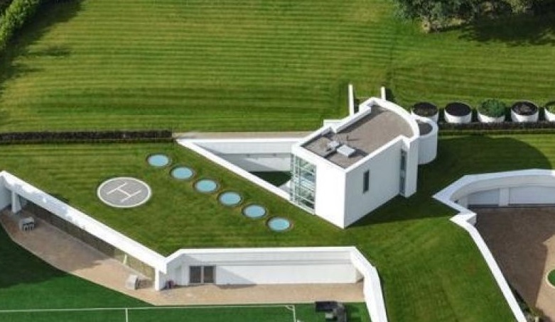 Nel giardino della casa c’è anche una pista d’atterraggio per elicotteri.