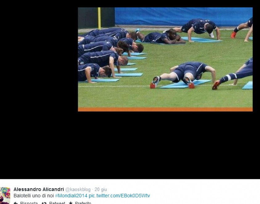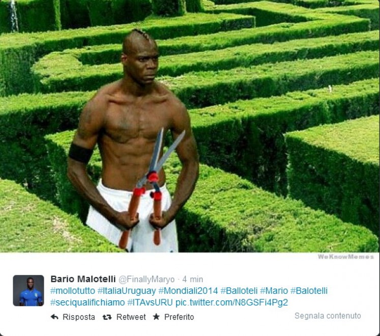 ROMA – Dopo la sconfitta dell’Italia con l’Uruguay, che ha portato gli Azzurri fuori dal Mondiale, su Twitter arrivano gli sfottò su Mario Balotelli, uno dei maggiori indiziati della sconfitta.