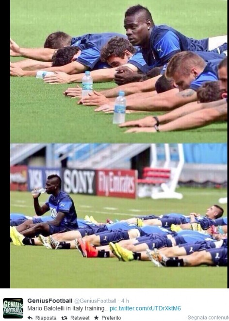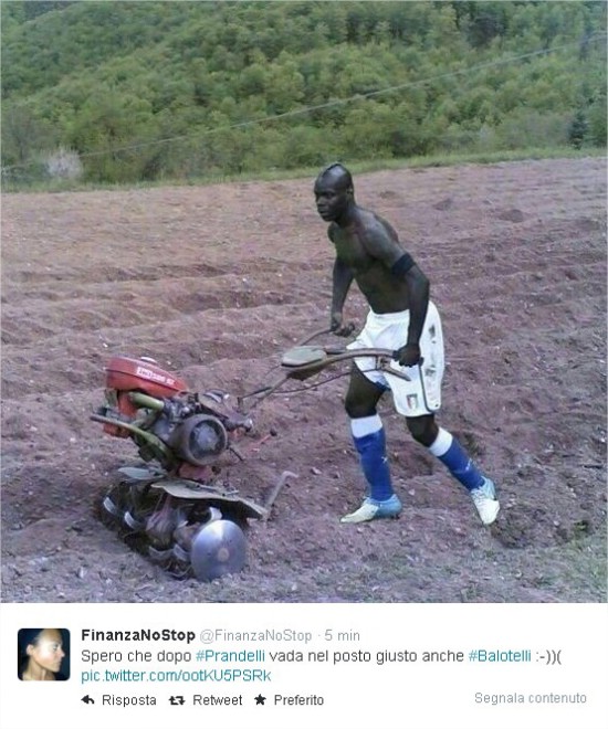 Nei fotomontaggi, si vede Balotelli che taglia l’erba in campo. In un’altra immagine l’attaccante ha una Coppa Rica all’amarena in mano. L’allusione è all’altra sfida persa dall’Italia, quella con la Costa Rica. Intanto a difendere SuperMario (per molti diventato MiniMario), è rimasto Luciano Galliani. L’ad del Milan ha infatti definito il calciatore “l’unico talento che ha l’Italia. Ecco perché si parla solo di lui”.