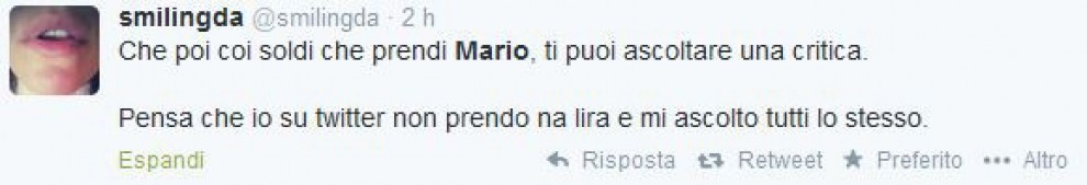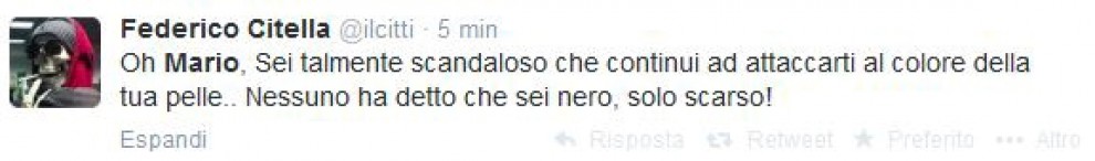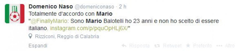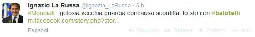 Oltre ai leader politici, sono in tanti a commentare l’uscita della nazionale dai Mondiali 2014 e la performance in campo di Mario Balotelli, uno dei maggiori indiziati del fallimento degli Azzurri. I commenti non risparmiano nemmeno quanto detto da Balotelli stesso su “negri” e “razzismo”, in risposta (alquanto confusa) di chi aveva attaccato il calciatore accusandolo di non essere italiano: