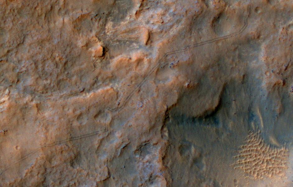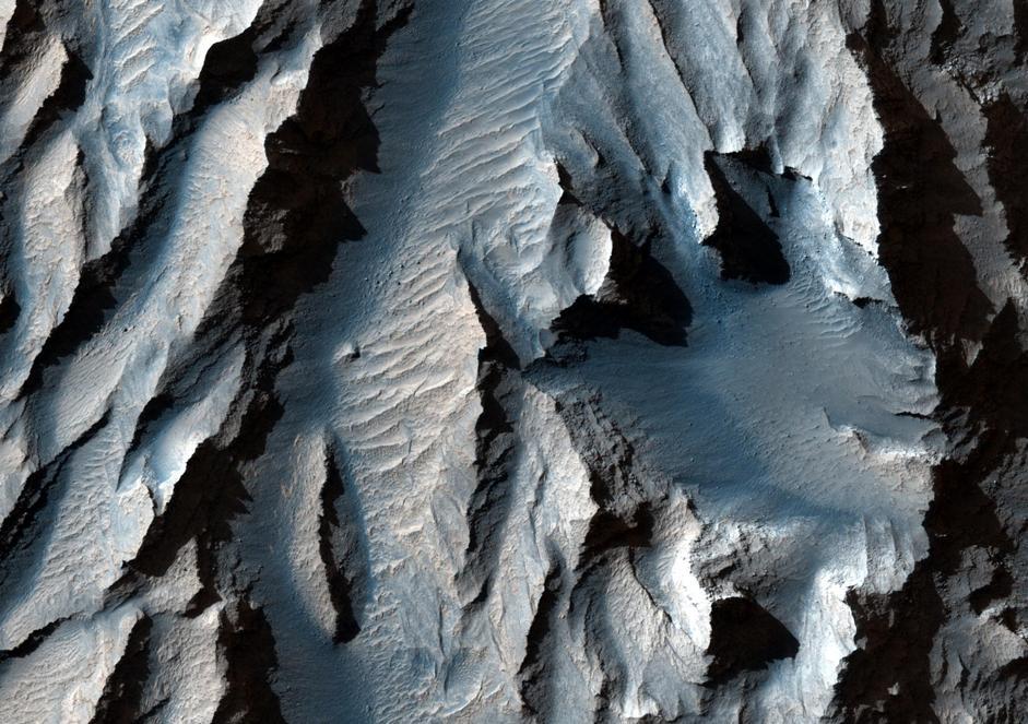 ROMA – La Nasa ha diffuso nuove e spettacolari immagini della superficie di Marte raccolte dalla sonda Mars Reconnaissance Orbiter. In questa foto le dune di sabbia create dal vento al bordo occidentale del cratere da impatto Hellas, nell’emisfero meridionale del Pianeta rosso. Dune identiche, chiamate barcane, si trovano anche sulla Terra. Nelle foto anche le tracce lasciate da Curiosity nel cratere Gale. Il rover è giunto su Marte nell’agosto 2012.