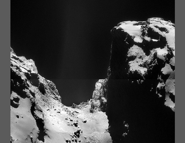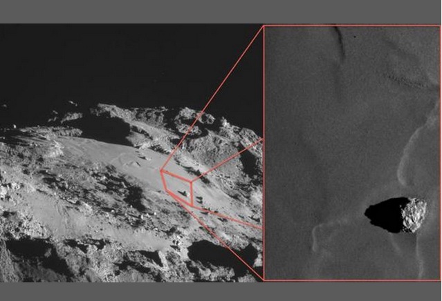”Sembra quasi – spiega Sierks – che la polvere che copre la superficie della cometa si sia insinuata delle fessure del masso. Ma, naturalmente, è troppo presto per essere sicuri”.