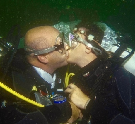 “Le foto, gli abbracci e pure le lacrime della sposa racchiuse dentro alla maschera. Tutto a meno sedici metri di profondità, sulla “secca Ciano” al largo di Jesolo, in corrispondenza di piazza Mazzini. Una volta tornati in superficie, Elisa Nicorelli e Martino Pivato sono stati salutati da una pioggia di petali. I due novelli sposi di Campocroce, titolari di due pizzerie da asporto a Mogliano e Frescada, hanno voluto così ri-celebrare la loro unione, dopo le nozze con rito civile il 12 giugno a Torre di Mosto, in fondo al mare”.