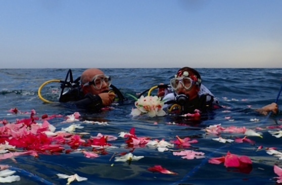 “La cerimonia, orchestrata dal Centro Sub Treviso e dal Diving Nord Adriatico di Jesolo, era in programma domenica, ma le previsioni avverse hanno imposto di anticipare a sabato il primo matrimonio subacqueo nell’Alto Adriatico. La location scelta non è stata casuale. ‘Al nostro matrimonio mancava una persona importante, ossia Luciano Roma detto Ciano, morto in un incidente’, racconta Elisa che era stata allieva sub di Ciano, ‘abbiamo deciso di andarlo a trovare, coronando il nostro sogno di sposarci sott’acqua’. Giovanni Alban, responsabile del Centro Sub e del Diving oltre che celebrante, ha organizzato tutto alla perfezione con il suo staff: la moglie ha realizzato le mute per gli sposi, il tavolo delle promesse era agghindato con fiocchi e tulle, sul fondale è stata stesa una corsia bianca per non rovinare le formazioni naturali. Anche la formula del “sì” è stata adattata al matrimonio speciale: “Non osi separare l’uomo ciò che il mare ha unito”.