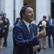 ROMA – Matteo Renzi si fa vedere col gelato in mano alla fine del Consiglio dei Ministri: il premier risponde all‘Economist e a Palazzo Chigi arriva un carretto che serve gelati. Il giorno prima il settimanale britannico aveva fatto un fotomontaggio con Renzi che mangiava un gelato insieme ai leader Ue sulla barca dell’Europa che affonda. E il premier dopo aver offerto coni ai presenti ha mangiato anche lui il gelato.