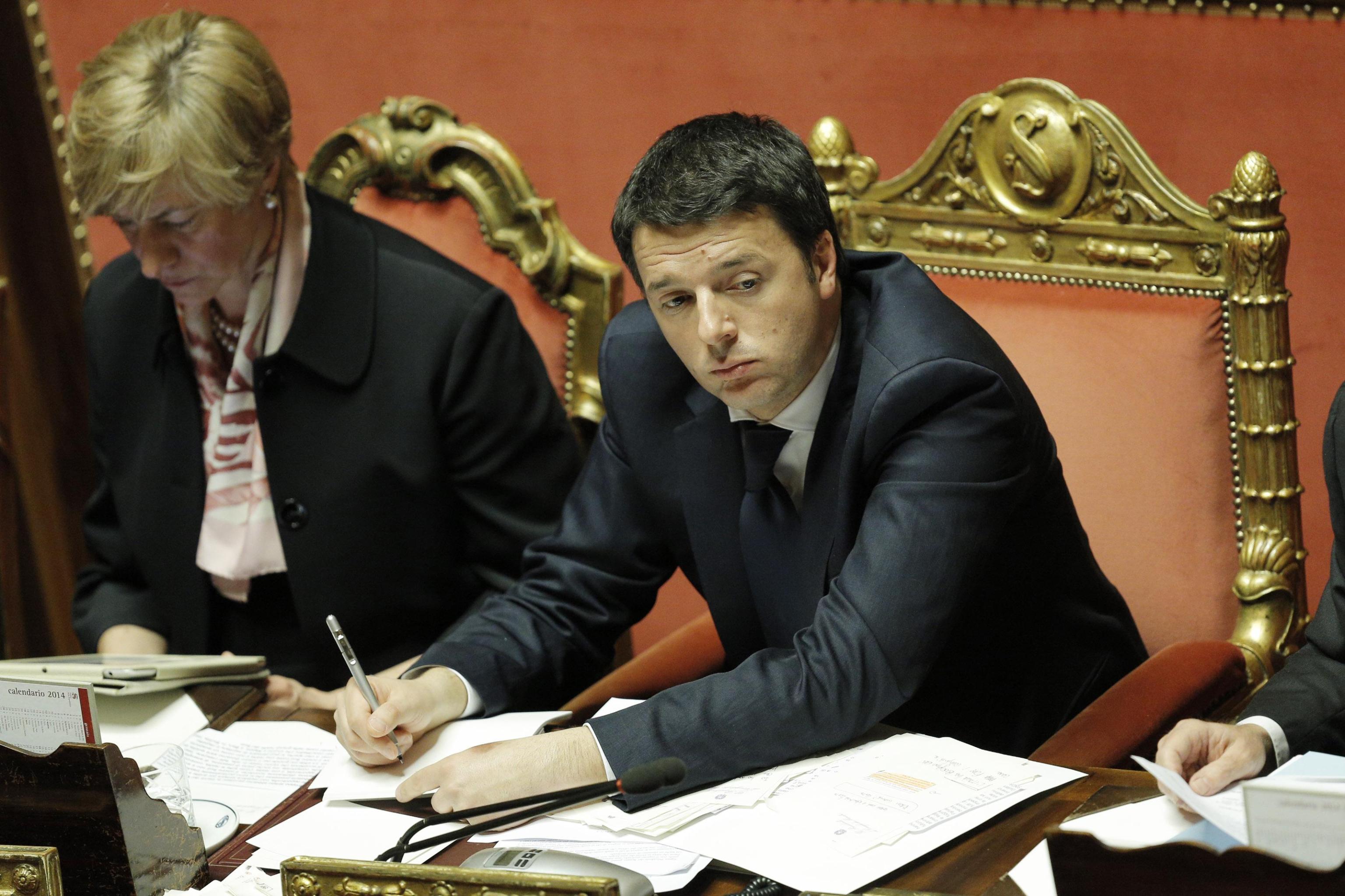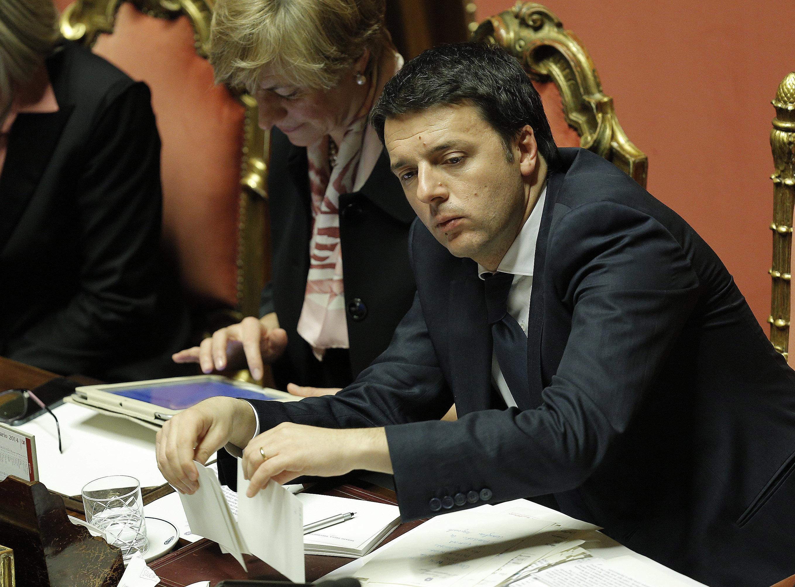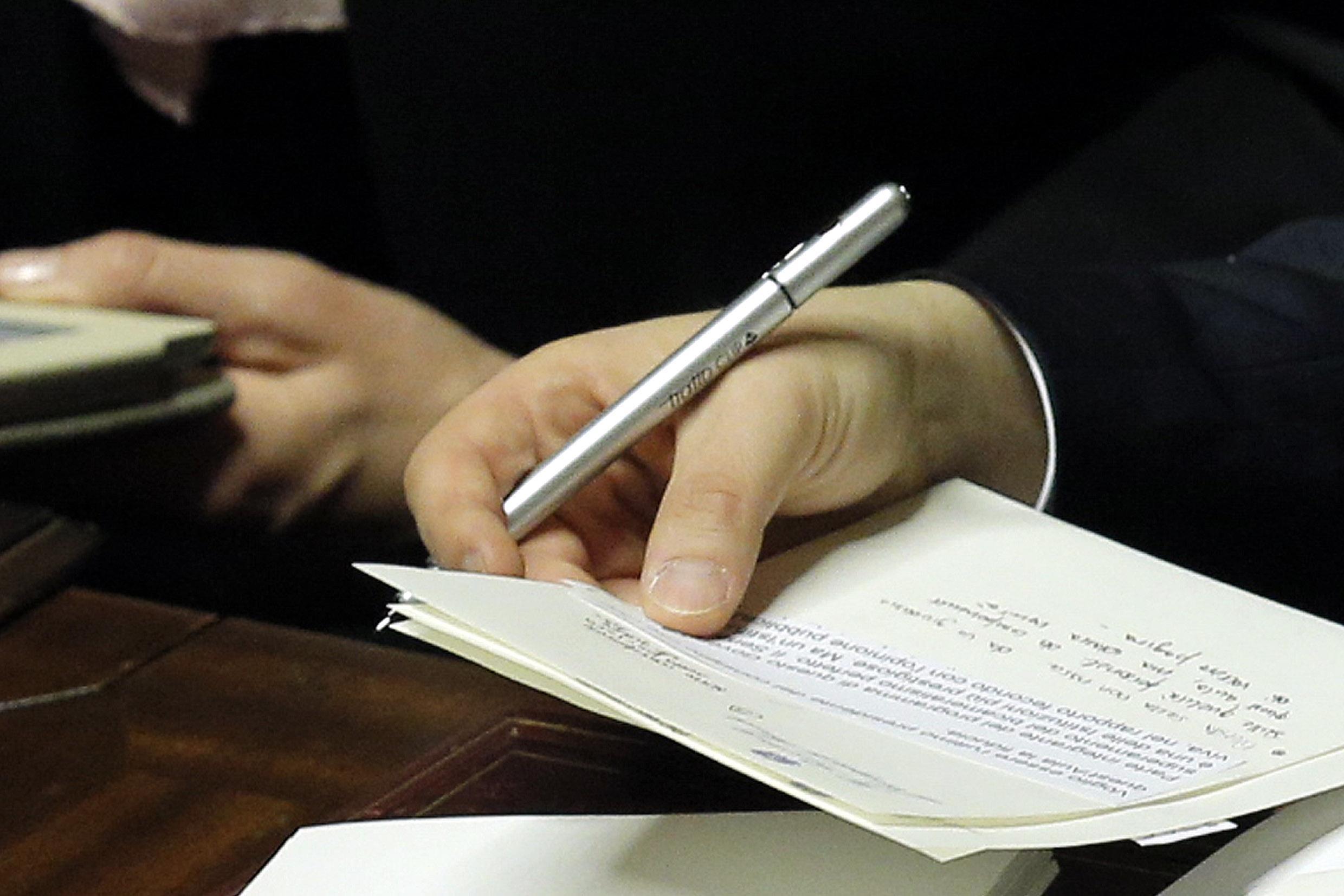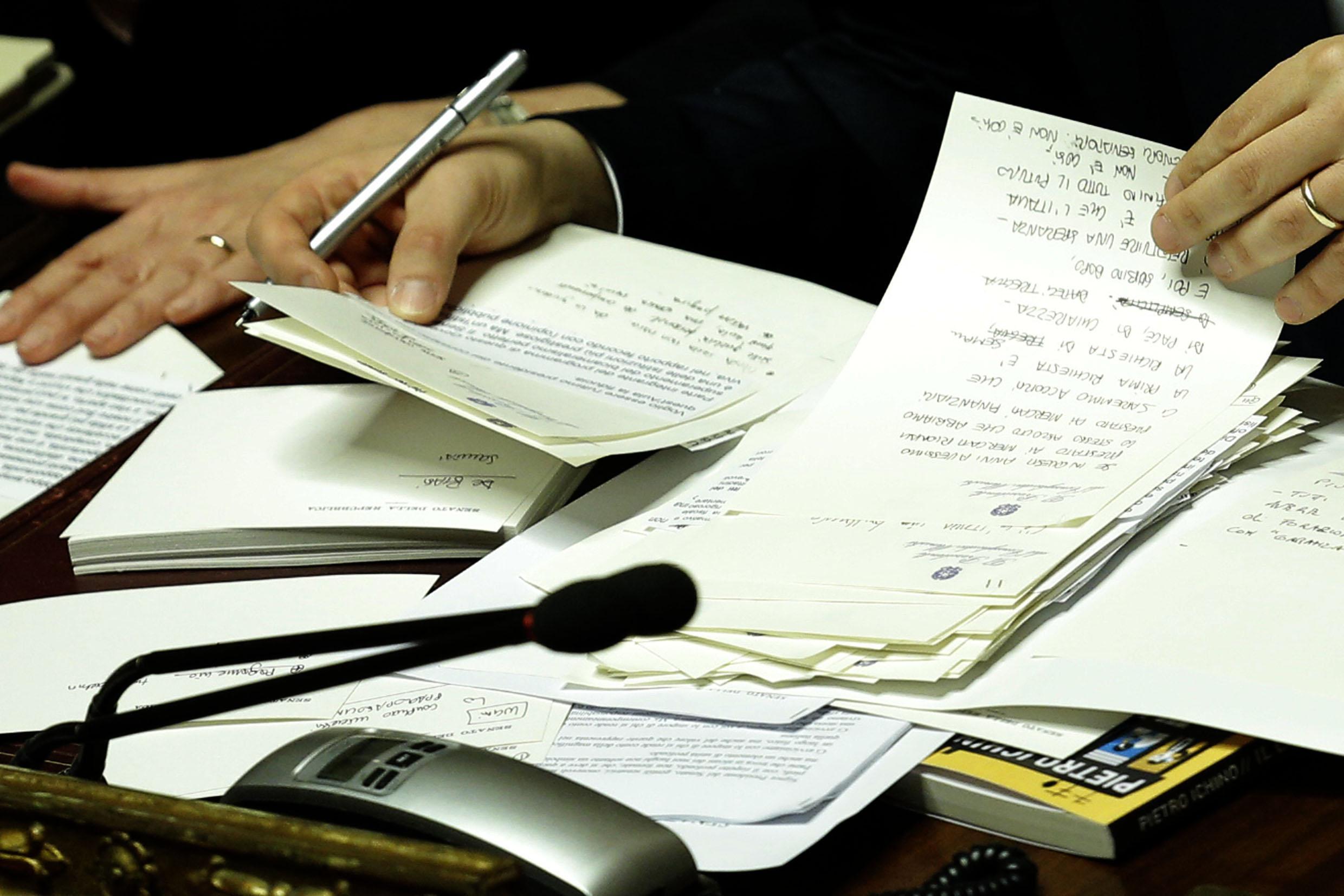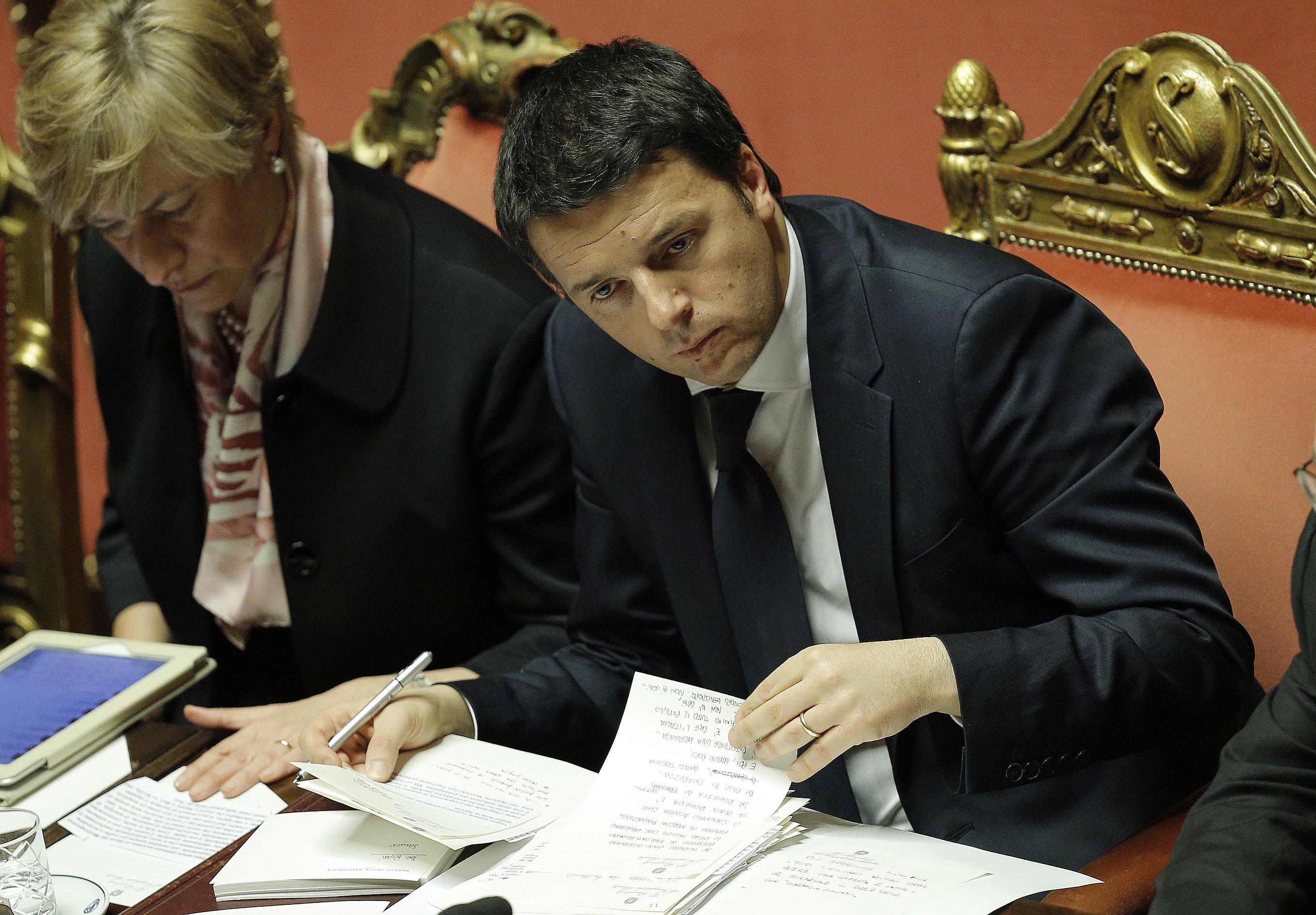ROMA – Tratto pen nero, carta intestata del Senato e la mano di Matteo Renzi, segretario Pd e neo premier, che continua ad annotare. Note e appunti che prende con lo stesso pennarello che tanto ama Silvio Berlusconi. Un Renzi “multitasking” che ascolta gli interventi, prende appunti, ma nel frattempo legge uno ad uno i biglietti di felicitazioni che gli sono stati consegnati dai commessi.