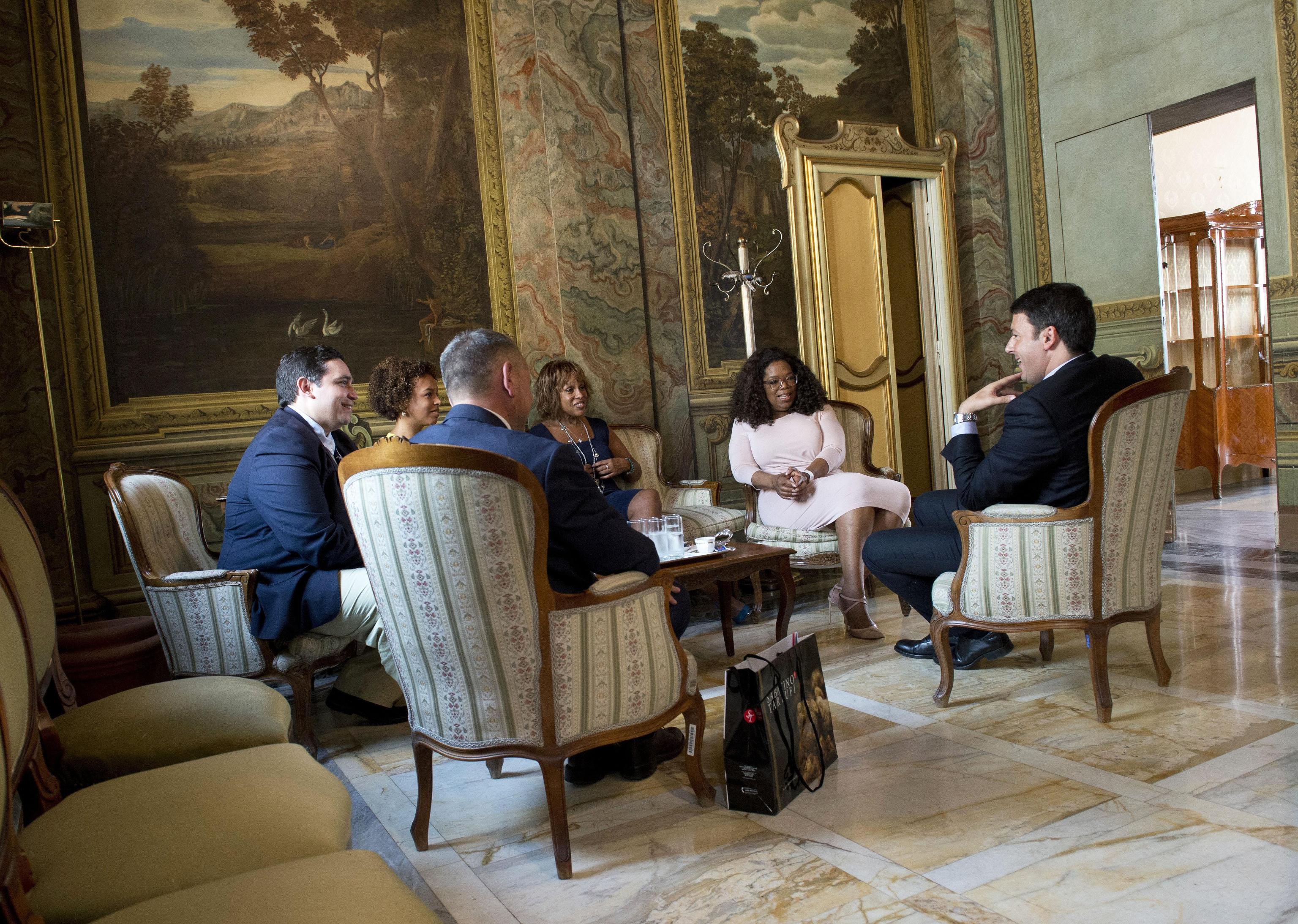 ROMA – Il presidente del Consiglio Matteo Renzi incontra a Palazzo Chigi la madre dei talk show americani, Oprah Winfrey. I due avrebbero pranzato insieme e conversato sui divani per circa mezz’ora, di una delle stanze del palazzo. Poi la Winfrey ha lasciato la sede del Governo a bordo di due van dai vetri oscurati.