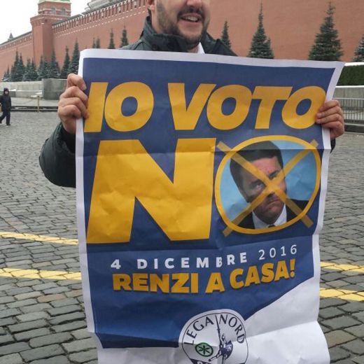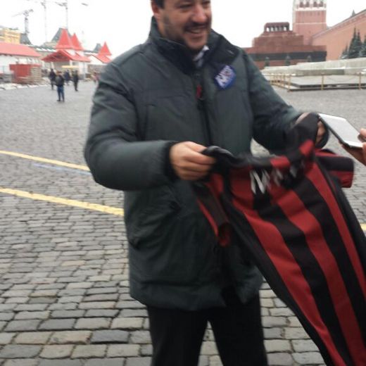 MOSCA – “Arrestato per il Milan…”, ha detto scherzando il leader della Lega Nord, Matteo Salvini, quando in Piazza Rossa a Mosca ha visto due agenti di polizia avvicinarsi dopo che si era fermato per una foto ricordo “per il figlio” con in mano la maglietta del Milan. Ma a rischiare di metterlo nei guai in realtà è stato il vistoso striscione per il No al Referendum del 4 dicembre, srotolato poco prima nella piazza simbolo della capitale russa.