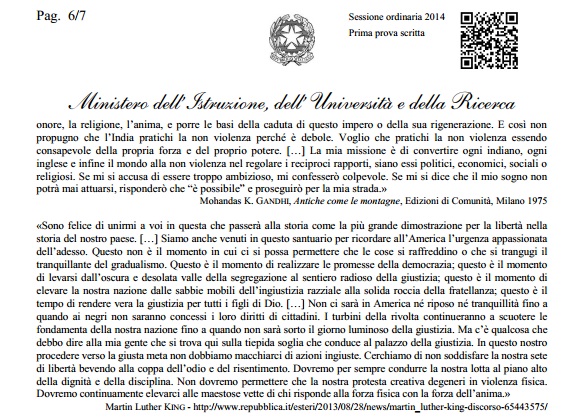 ROMA – “Violenza e non-violenza: due volti del Novecento” questo uno dei titoli delle tracce (ambito storico-politico) della prima prova della Maturità 2014.