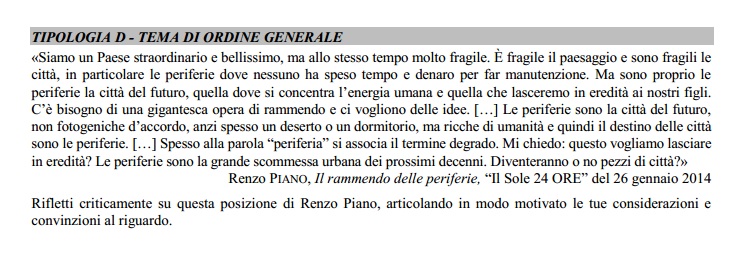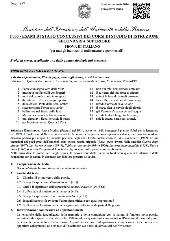 La prima prova è divisa in quattro opzioni: l’analisi del testo, in poesia o prosa, il saggio breve, il tema storico e quello di carattere generale, legato all’attualità.