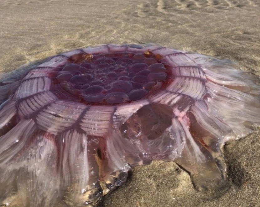 Il mare di questi luoghi è ricco di meduse, ma mai prima d’ora era stato visto un simile esemplare. A scoprirla e fotografarla è stata la famiglia Dickinson, che ha notato il grosso animale mentre si agitava sulla sabbia tentando di tornare in acqua.