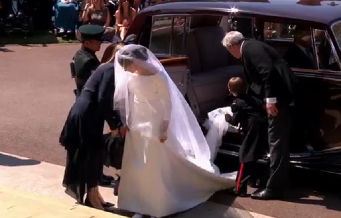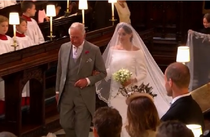 Le famiglie, con il principe Carlo accanto alla madre di lei, Doria Ragland, si erano intanto schierate sulla scalinata della chiesa per le foto e i saluti, al suono delle campane a festa.