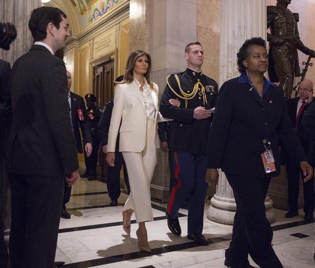 WASHINGTON – La first lady Melania Trump sceglie un completo pantalone bianco di Dior per il discorso sullo stato dell’Unione. La scelta del bianco la contrappone alle democratiche che hanno scelto il nero come forma di protesta contro il marito Donald Trump.