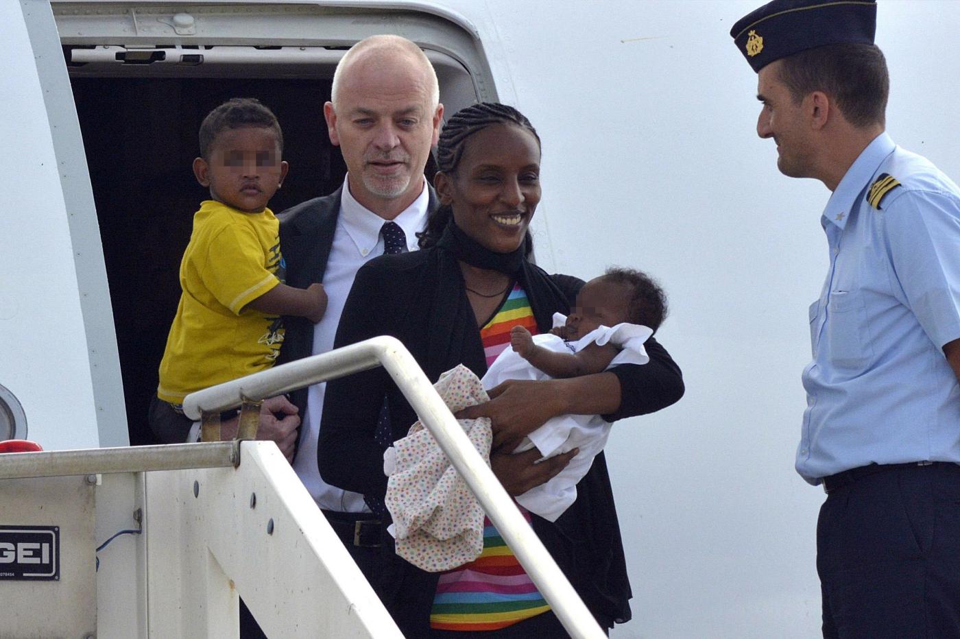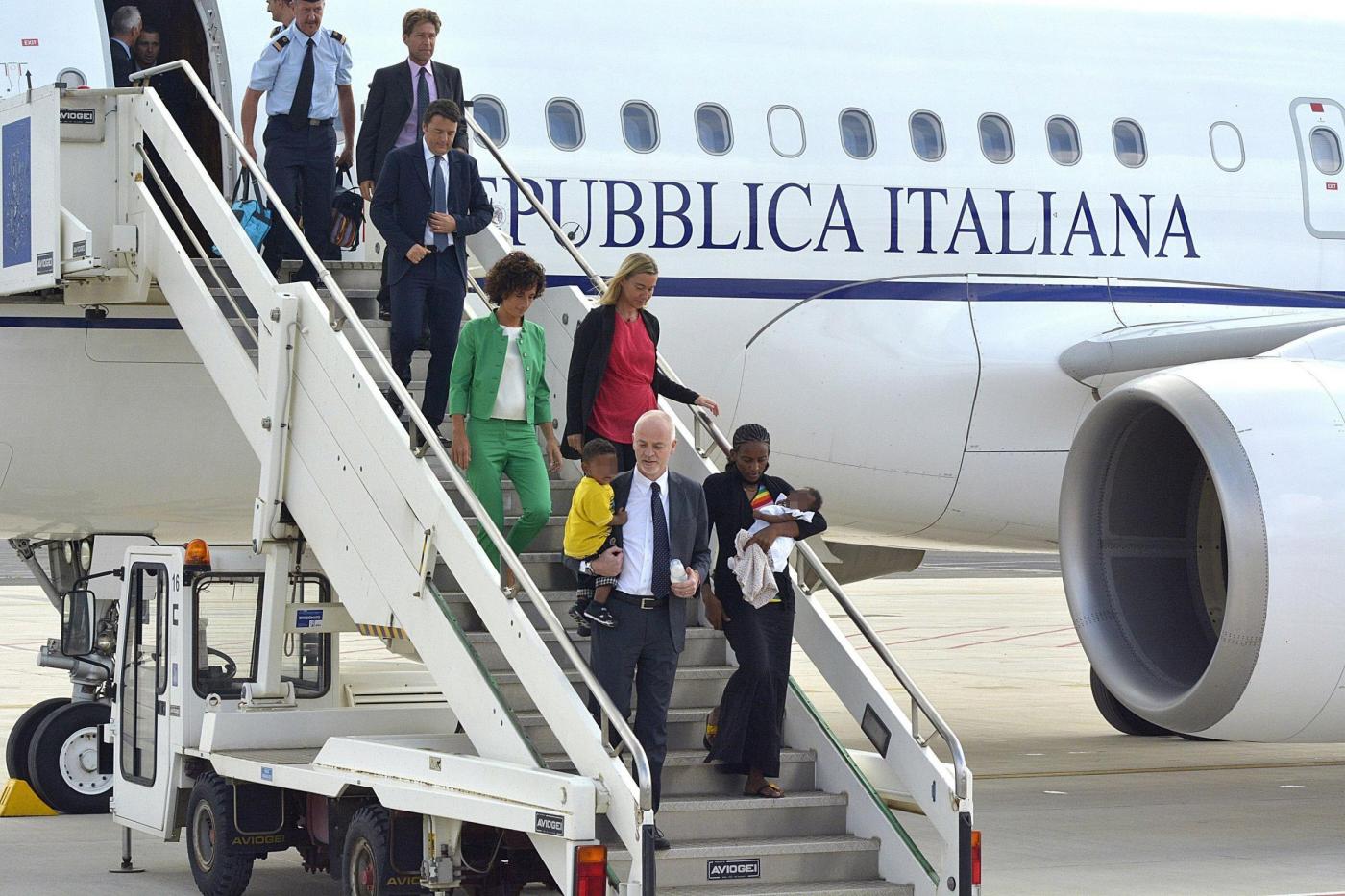 ROMA – La nuova vita di Meriam Ibrahim inizierà da Roma. La giovane cristiana trattenuta a Khartoum, in Sudan, dopo essere stata condannata a morte per apostasia, è arrivata in Italia su un volo della presidenza del Consiglio. Con lei il viceministro degli Esteri Lapo Pistelli, che nelle foto vediamo scendere le scalette dell’aereo con in braccio il figlio maggiore di Meriem. Pistelli ha seguito da vicino il caso della donna sudanese trattenuta in carcere per aver sposato un cristiano.