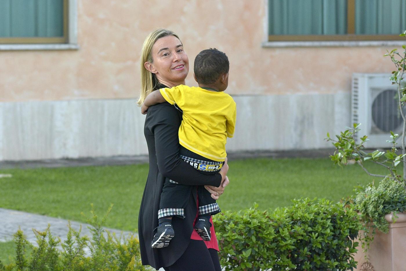 Il caso di Meriam era stato citato dal presidente del Consiglio, Matteo Renzi, in occasione del suo discorso di inaugurazione del semestre europeo a Strasburgo. Parlando di Meriam e delle ragazze nigeriane sequestrate dagli islamisti di Boko-Haram, Renzi aveva sottolineato: “Se non c’è una reazione europea non possiamo sentirci degni di chiamarci Europa”. Matteo Renzi con la moglie Agnese hanno accolto all’aeroporto di Ciampino Meriam insieme al ministro degli Esteri Federica Mogherini. (Foto Lapresse: l’arrivo a Roma di Meriem Ibrahim con i due figli e il marito David).