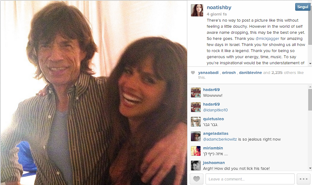 ROMA – Un selfie con una modella israeliana, una foto paparazzata sul balcone di un hotel a Zurigo con una giovanissima donna. Mick Jagger, a quanto pare, ha brillantemente superato il dolore per la perdita della compagna L’Wren Scott, che si è suicidata 3 mesi fa a New York. Giorni fa la modella israelina Noa Tishby ha postato una foto su Instagram che la ritrae con Jagger: pare che i due abbiano avuto un flirt durante la tappa a Tel Aviv del concerto dei Rolling Stones. Passa qualche giorno e Jagger viene pizzicato sul balcone di un hotel di Zurigo insieme a un’avvenente ragazza bruna. La foto viene pubblicata dal Sun: i due sembrano appena svegli, lei lo abbraccia da dietro e lo bacia sulla testa. La serie di foto fanno infuriare la sorella della defunta Scott: