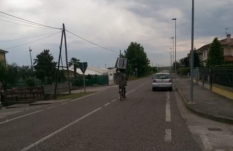 PADOVA – Immaginate di camminare per la strada e di vedere un uomo trasportare un frigorifero. La prima immagine che viene alla mente sarà sicuramente quella di un uomo che tiene il grande e pesante elettrodomestico su un carrello e lo trascina. Non è la scena che si sono trovati davanti gli abitanti di Agna, in provincia di Padova, quando hanno si sono visti sfrecciare davanti agli occhi un migrante in bicicletta con un frigorifero poggiato proprio sulla testa.