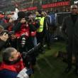 Al 2′ ci prova Robinho con un tiro centrale. Poco dopo Rafael e’ costretto a smanacciare un pallone pericoloso calciato da Emanuelson. Dopo nove minuti di gioco, la prima vera occasione dei rossoneri con un bel colpo di testa di Kaka’, di poco a lato. E’ un monologo del Milan che fraseggia e costruisce senza trovare l’affondo vincente. Al 14′ splendido taglio di Kaka’ per Balotelli che non ne approfitta.