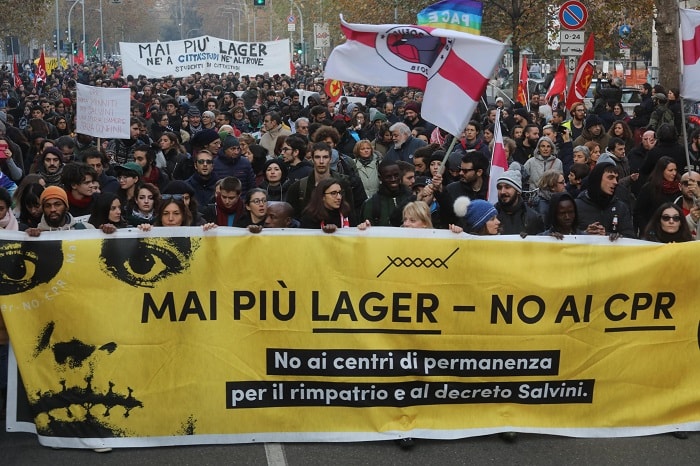 Tra gli striscioni quelli contro la trasformazione in Cpr del centro di via Corelli e quelli con scritto “Lega Salvini e lascialo legato” e “Lega ladrona. Salvini casta”. Al corteo non ci sono state tensioni e la manifestazione ha percorso il percorso prestabilito.