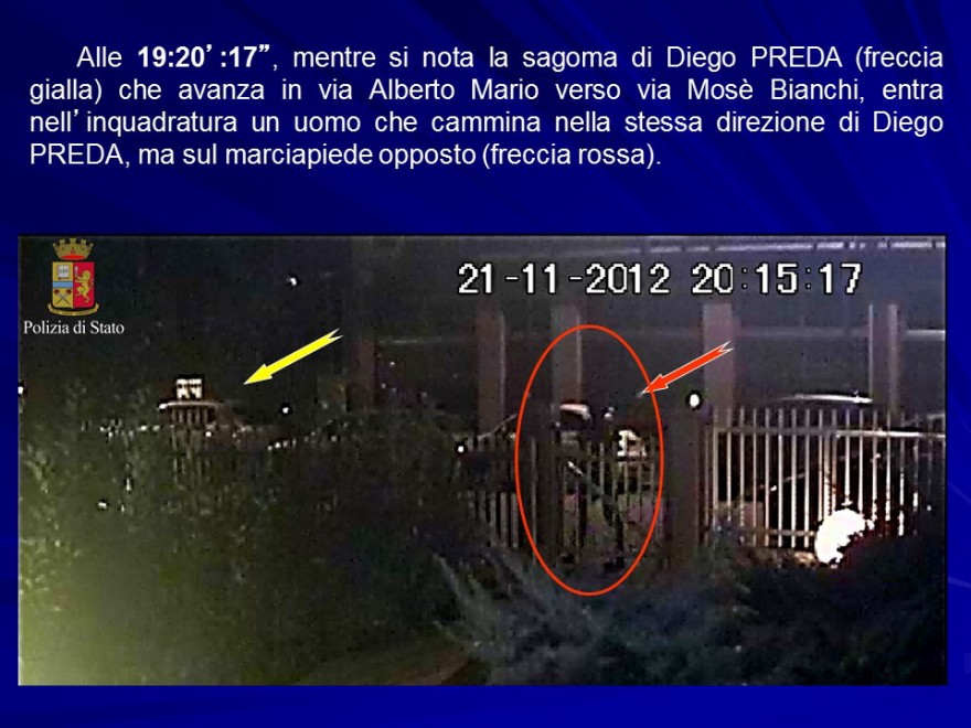 MILANO – Un uomo con jeans e una felpa scura e capelli corti. Un altro uomo con jeans e giubbotto di pelle nera. Sono i due potenziali testimoni dell’omicidio di Diego Preda, ucciso in via Mosè Bianchi a Milano il 21 novembre 2012. Ora la polizia li cerca: potrebbero aver incrociato l’assassino pochi secondi prima, o dopo, l’omicidio.