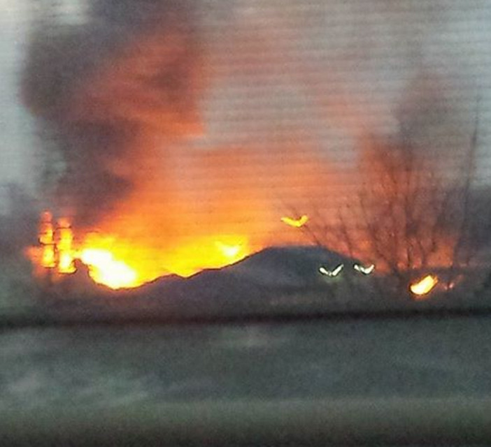 Secondo quanto comunicato dai vigili del fuoco, le fiamme hanno invaso la struttura che si trova accanto a un campo nomadi. Sul posto si è alzata una colonna di fumo che prima del tramonto era visibile a chilometri di distanza.