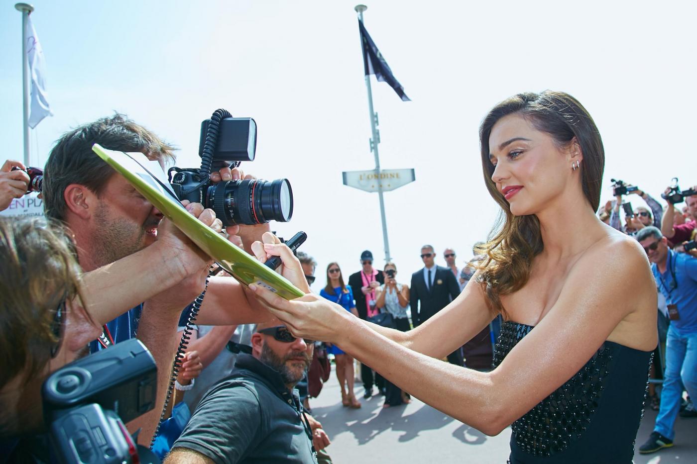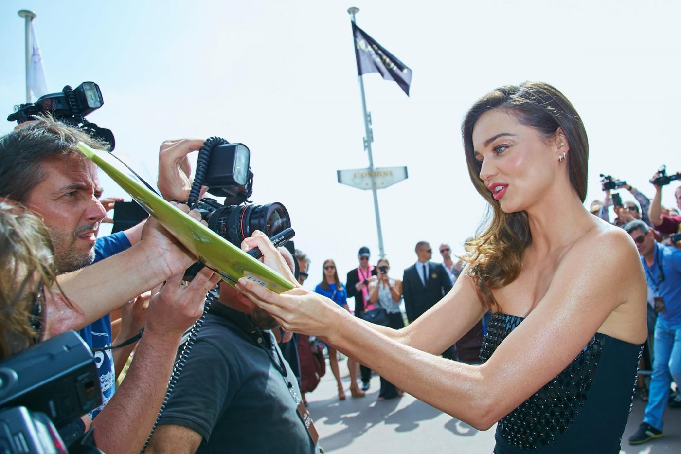 Miranda Kerr sbarca al Festival del Cinema di Cannes e sfodera due abiti che mostrano tutta la sua bellezza. Il primo in rosa shocking e super scollato e cpn spacco lo indossava al Magnum Beach Party a Cannes ed è stato realizzato dal Fausto Piglisi, direttore creativo di Emanuel Ungaro. Si tratta dello stesso disegnatore che realizzò il famoso abito con spacco vertiginoso che Belen Rodriguez indossò sul palco di Sanremo nel 2012 e che mise in risalto il tatuaggio della farfallina.
