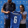 Iย giocatori hanno posato, in mezzo al campo, prima con la divisa ufficiale, poi con quella da calcio, con le rispettive maglie azzurre consegnate, una ad una, da 23 bambini e ragazzi vincitori di un concorso indetto dallo sponsor.ย Assegnati anche i numeri di maglia: a Cassano il 10, a Balotelli il 9. Gigi Buffon, capitano e portiere della Nazionale, vestirร il numero uno.